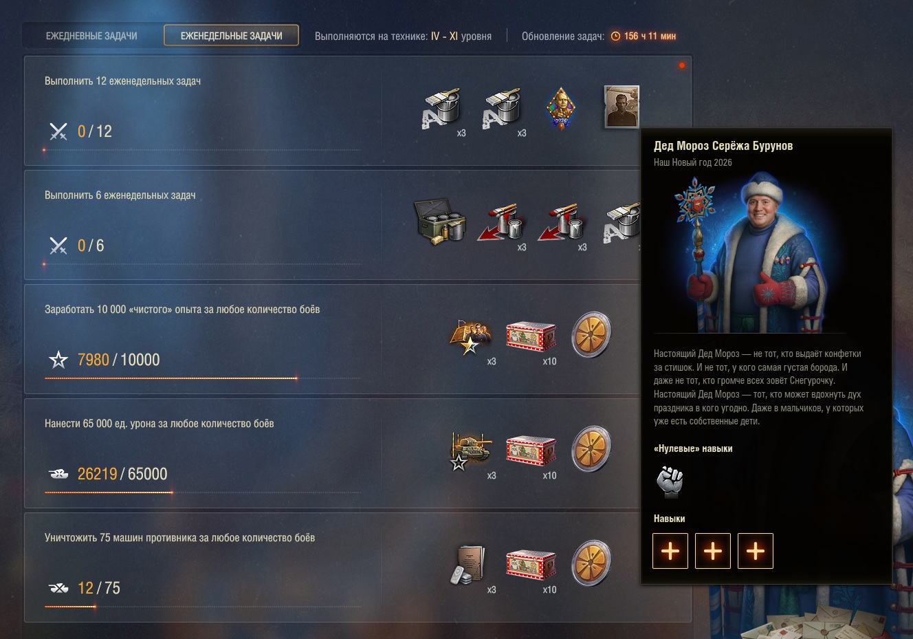 У меня Бурунов от списка новогодних танков. В прошлый раз было жирнее. Эти скоты вообще работать перестали, могли бы нахуячить побольше имбочек, тут не за что платить.