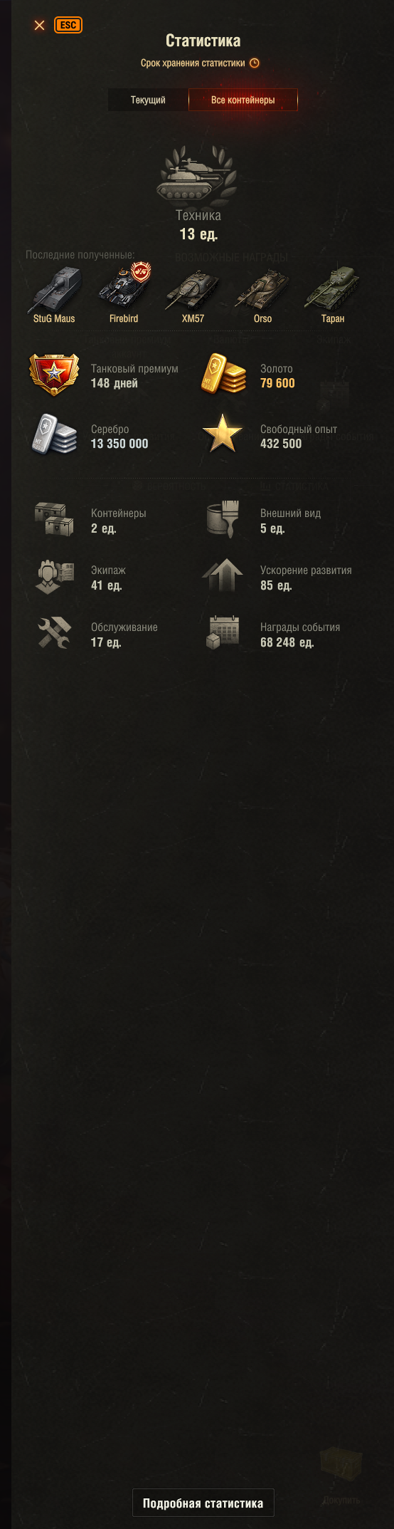 Выпал Таран с первой коробки второго этапа. Не хотел ведь начинать открывать больше коробки ради десяток второго этапа, но теперь нужно думать насчёт Штурм Мауса. Сильный байт на дальнейшие коробки с бесплатной коробки за прокачку ёлки. Купил 92 коробки по предзаказу, 10 по скидке в ангаре и 3 неудержался чтобы гаранта добить, и теперь придётся снова донатить.