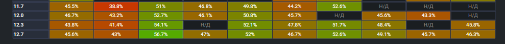 Внезапно пришла стата за ноябрь и советов немного попустило, но все еще 55%. Как я понимаю за счет того что СССР теперь каждый матч обязаны тянуть на себе амеров/немцев. >>50532914 По остальному что ты написал, в чем то ты прав, в чем то неправ. Но не суть. Все один хуй сводится к тому, что в тундре пушить нельзя и даже то что ты написал >Вышел на прострел, ебнул 1-2, упал ебалом в пол Было раньше, до ввода топ ЗРК, я так и играл как бы. Имел свои 1.7 по аккаунту и на каждой машине сетапа так отыгрывал. Было весело и задорно. Теперь же в среднем 1.2-1.3, учитывая медианную, это как бы все еще дохуя, но раньше было лучше, раньше было веселее, потому что таких атакующих было гораздо больше.