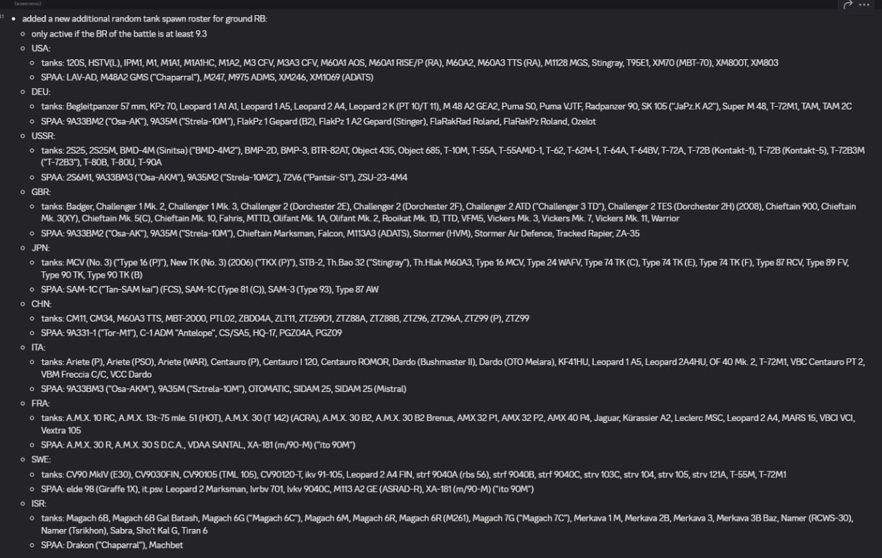 Новая зрк или КС + Любой топ вертолет на выбор (и апач и китайский хороши каждый по своему), СУ-30МКК (99.9% будет такой же как СУ-30СМ хотя должен быть во всем хуже, так как это модификация 96 года), главный танк ВТ5 (легкий танк с разведкой с 11.7) + Альклахид и МБТ-2000, потому что ПО БРОНЕ ОНИ ТАКИЕ ЖЕ КАК ТОП ОБТ С ТАКИМ ЖЕ ЛОМОМ, НО У НИХ -6.