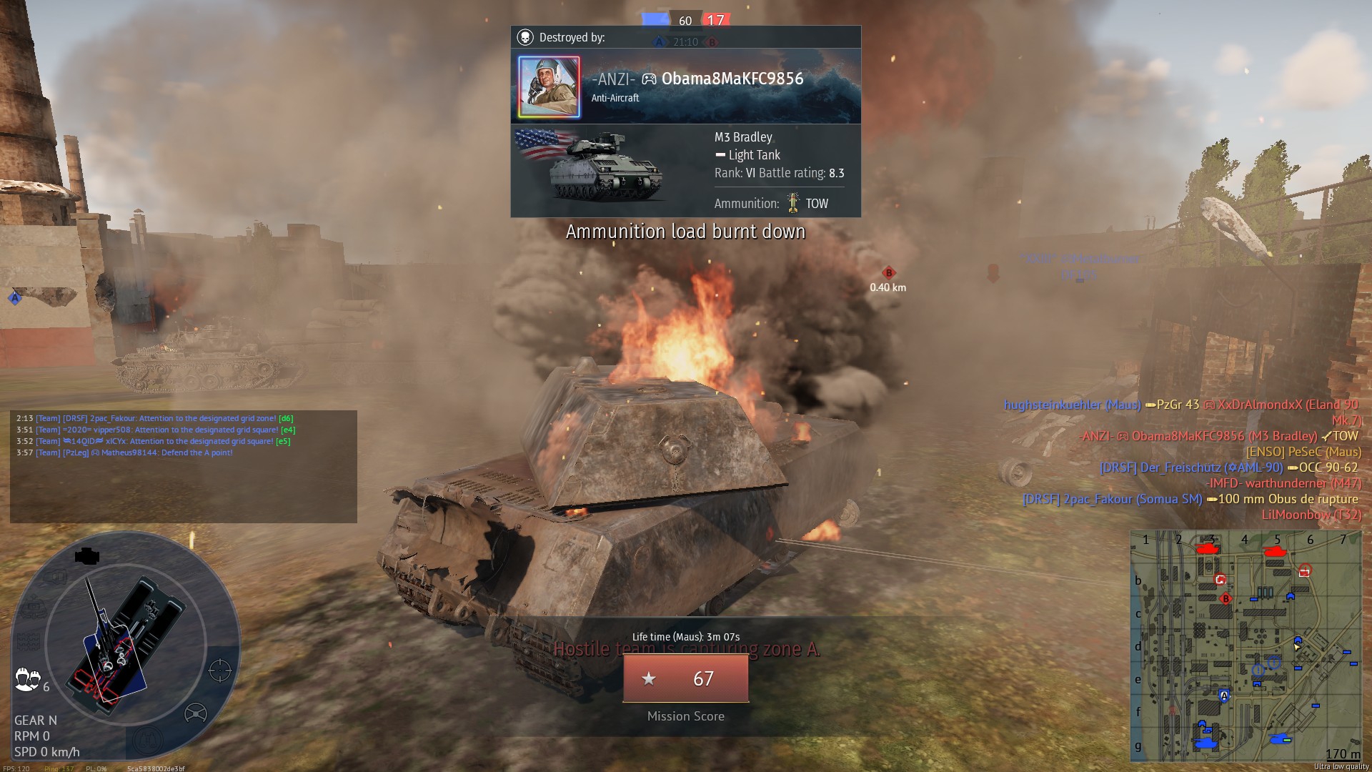 >>50536773 Да нихуя ты не сделаешь, краткая история одного боя 2,5 минуты, БВМ поджимает вражеский респ перед этим пережив попадание в БК и ответив ваншотом.