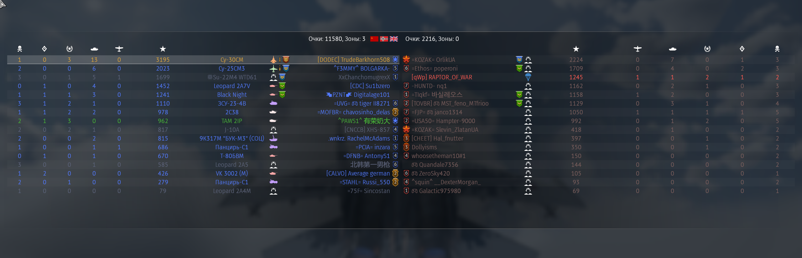 ВО ВТОРОМ БОЮ АЖ 2 ФРАГА СДЕЛАЛ 1 СУ-30СМ, после чего респ 2х зениток мстюнов - отправка СМ на респ. После этого все самолеты что появлялись - сразу подыхали.
