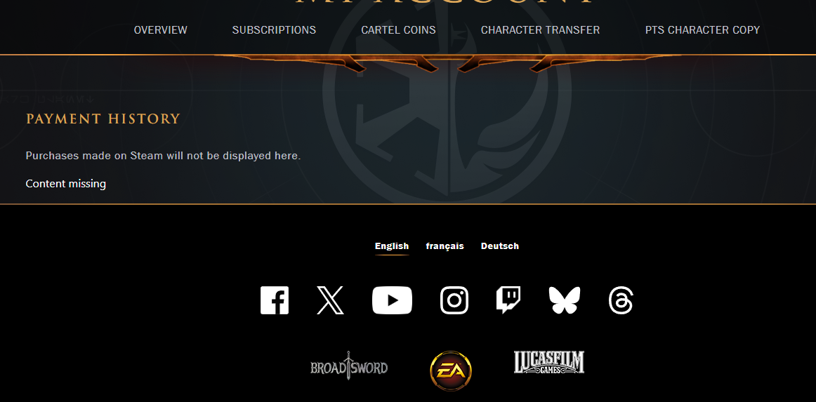>>50609752 Нашёл ещё свой старый аккаунт, который регал в 2013 году, а там какая-то всратая почта записана с доменом @trial.swtor.com. Решил поменять, но стандартными средствами не получится, надо обращаться в саппорт. Саппорта ЕА нет нихуя, либо звонить, либо в игре, а в игре нужно быть подписчиком, чтобы тикет создать. Ору, вот это сложности