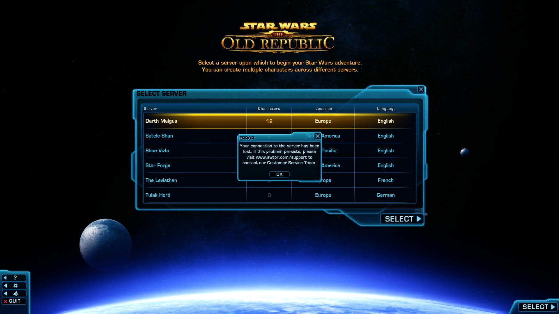 Какого ебаного хуя у меня не заходит на Дарт Малгус? У меня там все персы и не заходит, но на другие сервера пожалуйста. Сразу предлагают выбор. Вчера заходил на Малгус. Что за ебанина опять?