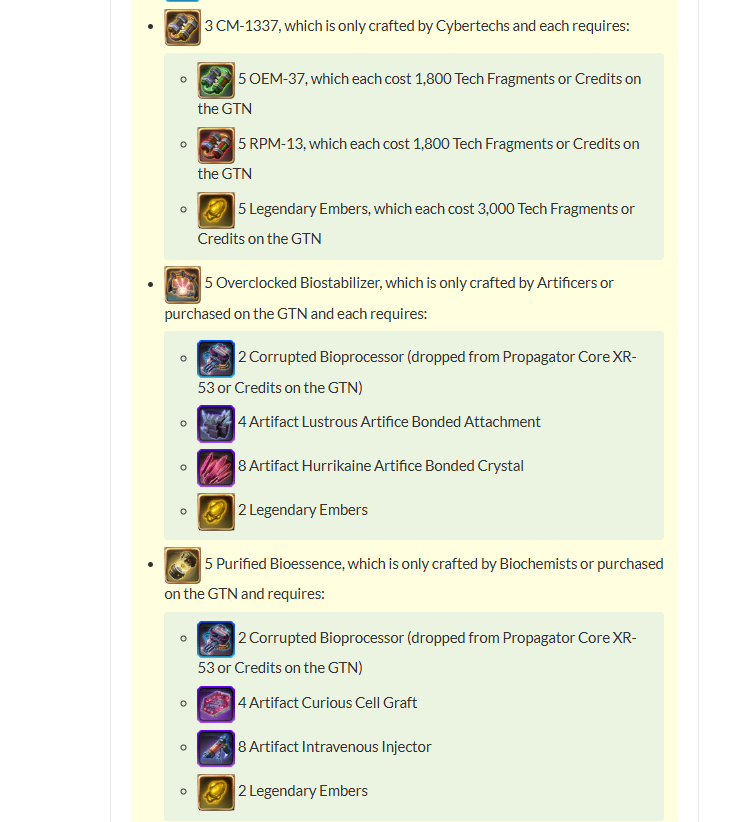 >>50731311 Ну вот я тебе предлагаю либо рецепт перекупить, если у тебя нет крафтеров. Фактически тебе нужны все профы 700 для полного ассортимента аугов. Если ты крафтер, я могу подгонять материалы нужные все. Ну и выгода в идеале криты пополам. Неместный возьмет все криты себе. Я преферед, но у меня все профы прокачаны, из все время я без дрочева техфрагов накопил на 4-5 ауга. А другие материалы и то из викликов пвп. Теперь в качестве награды за пвп виклиможно выбрать 3 биопроцессора. Полный сет 318 у задротов пве/пвп, которые дрочат хардмоды. Прикол в пвп - это где-то 25% статов по сравнению с 300. Поэтому фактически новые синие, которые по статам чуть хуже или чуть лучше 300 - базовый минимум. 310 - фиолет - дешевле на треть 318, но смысла нет, а 318 - это когда не знаешь, куда материалы всрать и хочешь в пвп немного задомининировать за счет гира.