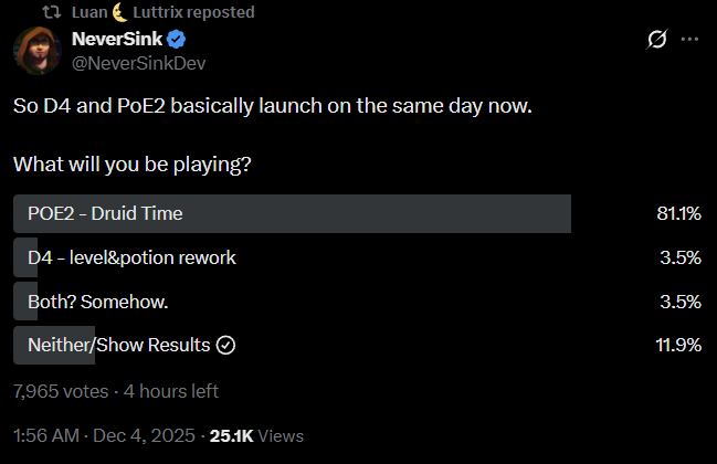 >>50520465 > и кто им помешает? конкурентов нет как и притока новых игроков 0.2-0.3 спустя месяц онлайн как у пое1шки делаем выводы аудитория нихуя не поменялась но она уже не хочет жрать волосатый кал судя по самому худшему ретеншену последней лиги монополия арпг круто но в этом не будет смысла без игроков любителей лысого копро