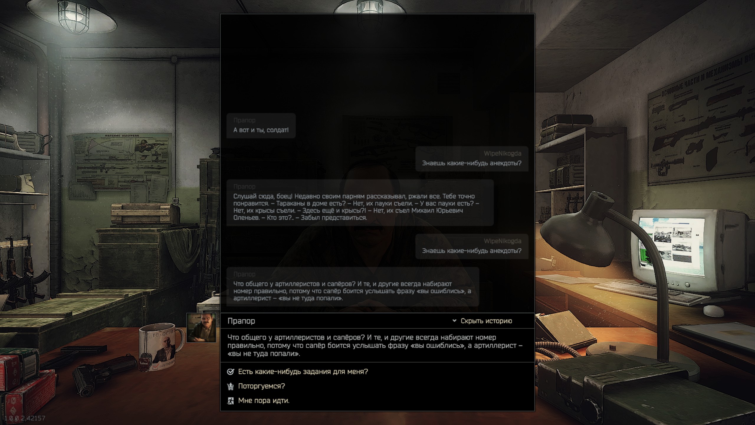 Вообще я конечно в ахуе от этой игры, в выходные с утра до вечера сижу пержу и подвхаю как собака. Сегодня после работы ебанул водки, зашёл на тамогу с скс и с первого раза выполнил реагент часть1 и убил двойку ЧВК, при том что за выходной я нихуя не мог этого сделать.