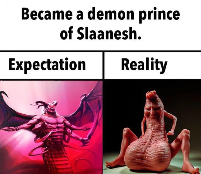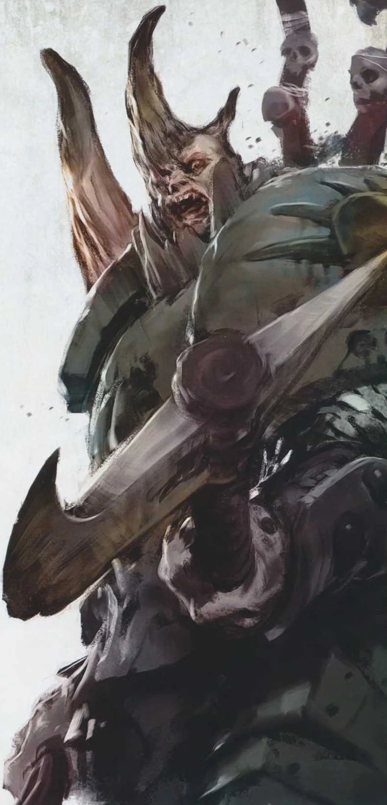 Наративно понравился кхорн. Я раньше его вместе с бистменами в голове держал типа просто все ломать срать убивать. Но Кхорн он прям несколько романтичный даже, доблестный, нигилистично печальный. Никаких мутаций, никакого обмазывания калом, только вперёд, только ебашить. Кровь, кость и латунь. Забудьте про страх, сон, еду и жизнь. Нам не нужны драгоценности и города только песок перемолотый в черный невесомый прах гневом нашего бога. Ничто за Ничто. Вперед, своими силами, до самого конца бесконечной войны.