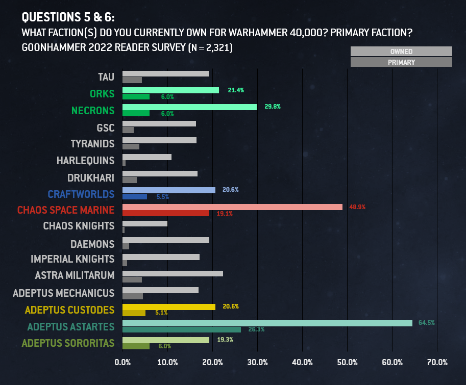 >>50537927 Странный график, все предательские легионы закинули под одну гребёнку (дг, тысячники, пожиратели), а арлекинов вывелки в отдельную категорию, от эльдар.