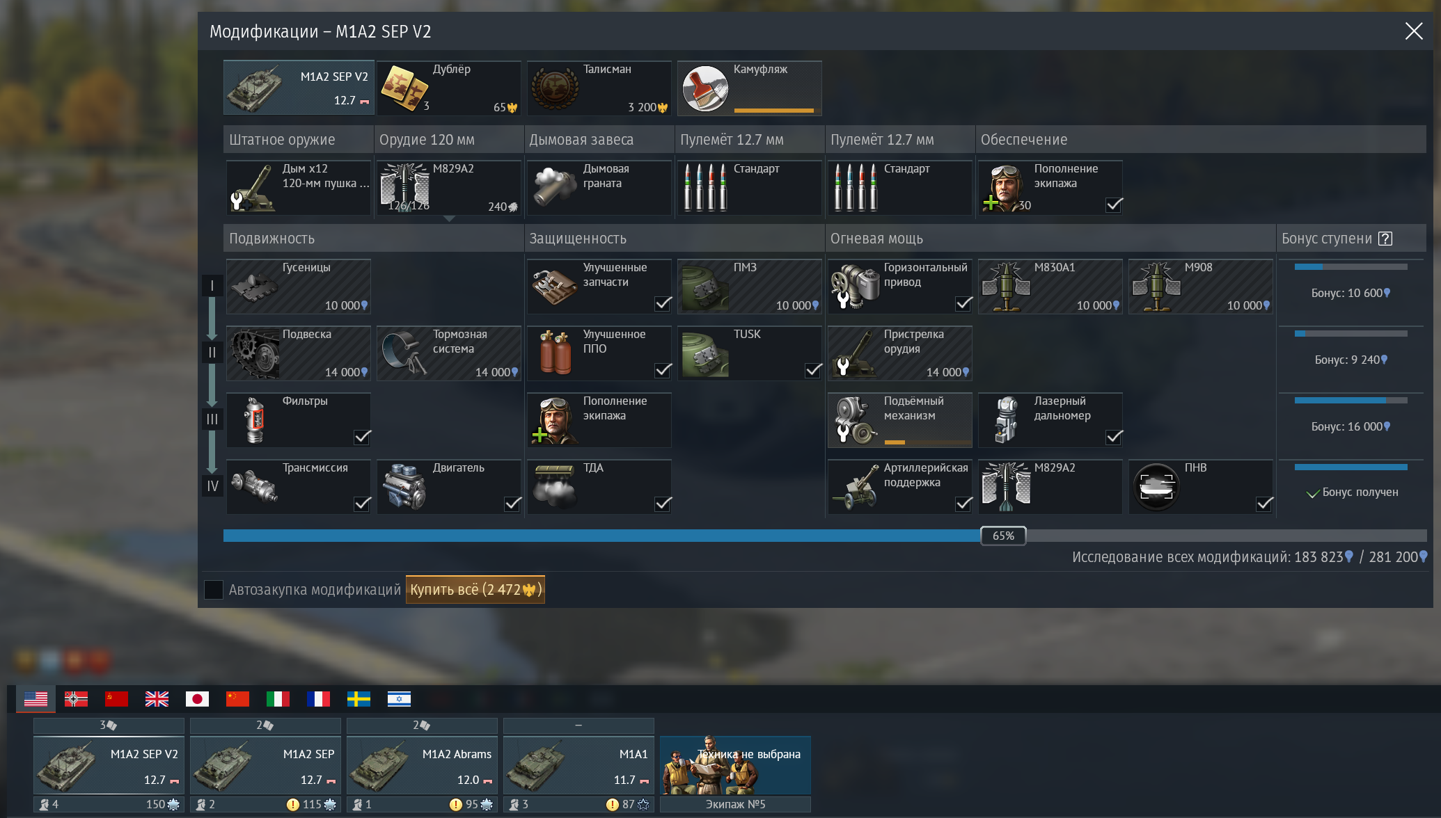 >>50573669 >ремонт 40с У тебя экипаж в говне, с таким ремонтом на чем угодно будет печально играть. Эксперты + ремонт на 2.5 кирпичика из 5 - это базовый минимум чтобы любая хуета выбившая тебе ствол с того конца карты не приехала тебя крутить. >т62-м1 Можешь качнуть, не считая отсутствия каза он много в чем получше амд. 435 неоч. Качай 9.3 сетап, катайся на 72ке и бмп-3. >немцев У них с 9.0 нормальные танки начинаются, мардеры действительно говнище. Хотя щас и лепикам 1а5 поди хорошо сосется от терминаторов.