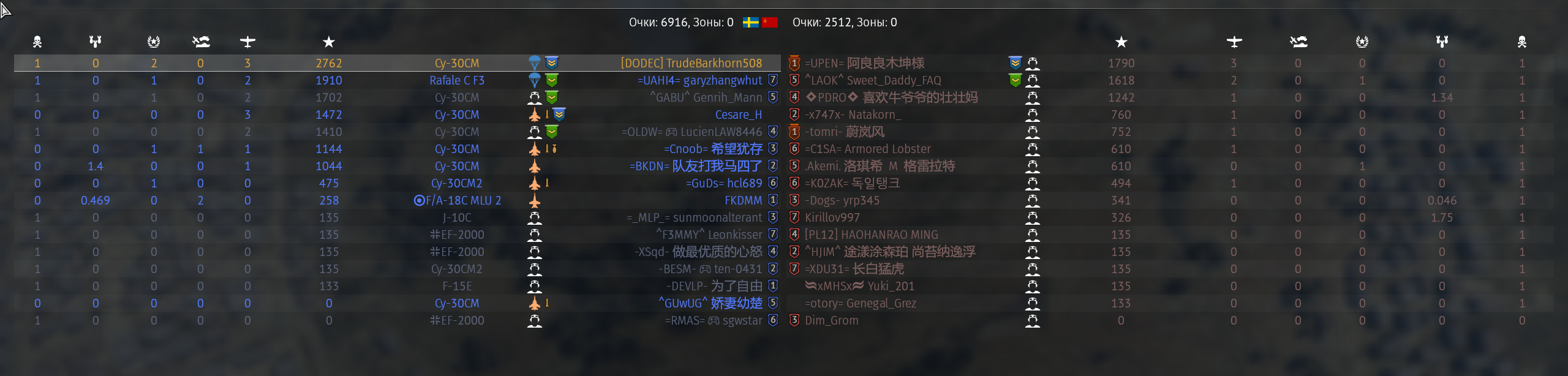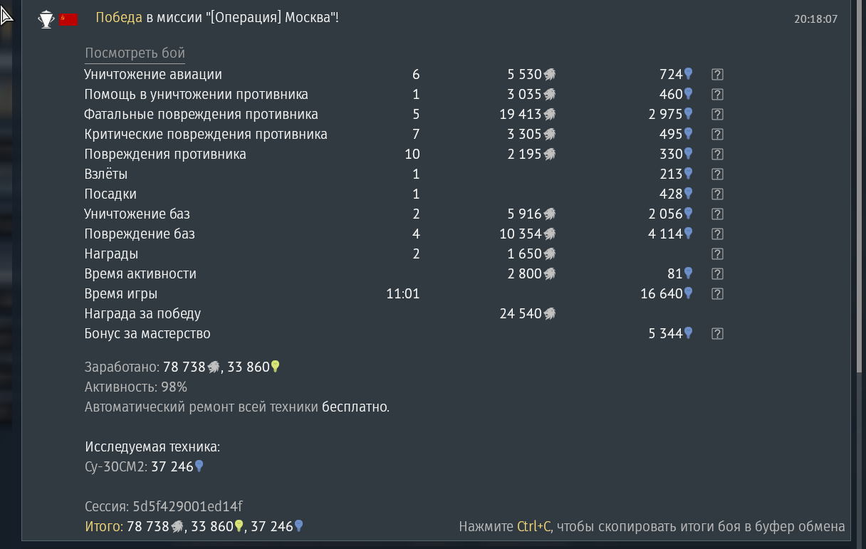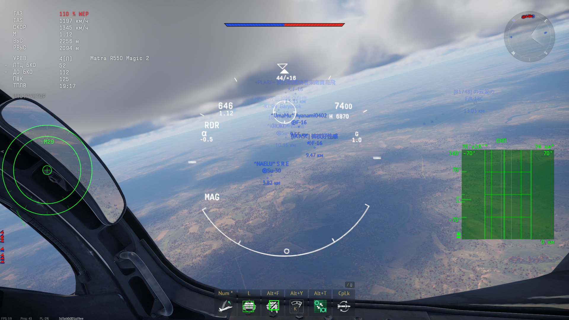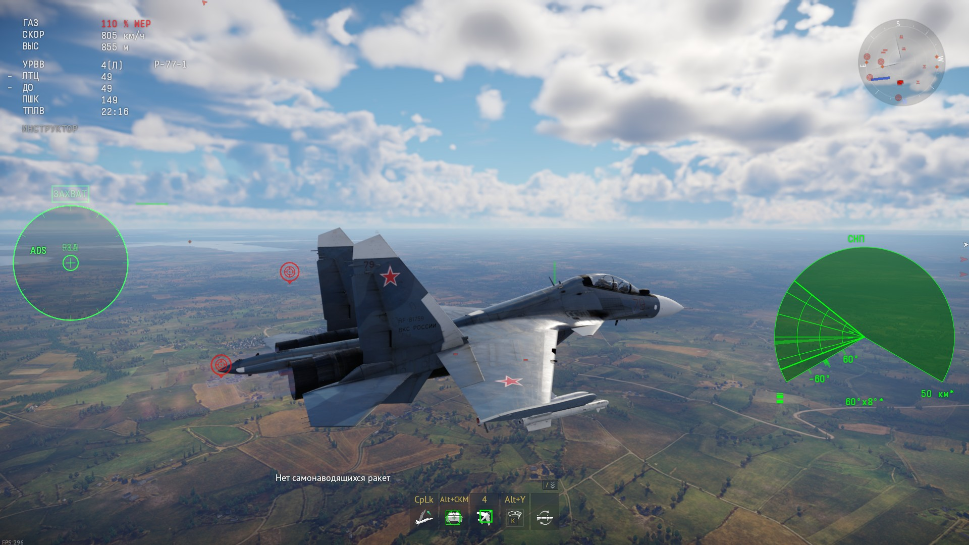 Дальше не ушел от мики, ну похуй, мне дальше СУ-30СМ2 осталось 50к опыта. А жидя РПУ врубил по максимуму.