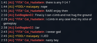 Щас впервые переиграл зенитчика с ракетами, я на а7д он на фларакхуйне, пустив ему маверик в ебальце а сам уклонился за секунду от его ракеты. Но он походу залетный на перволевельном дублере и тупо рукой без лока меня вел, ибо у меня даже диполей нет, хз как он там попасть не смог. Однако маверики странно работают, в пробнике и в бою по-разному. В пробнике просто жму кнопку захват цели и он чето там захватывает, или точку или если близко прям танчик, а в бою пока ещё и пробел не нажмешь он ниче не видит просто поиск постоянный. Походу от сложности боя зависит, надо будет в пробнике на сложности рб потестить.