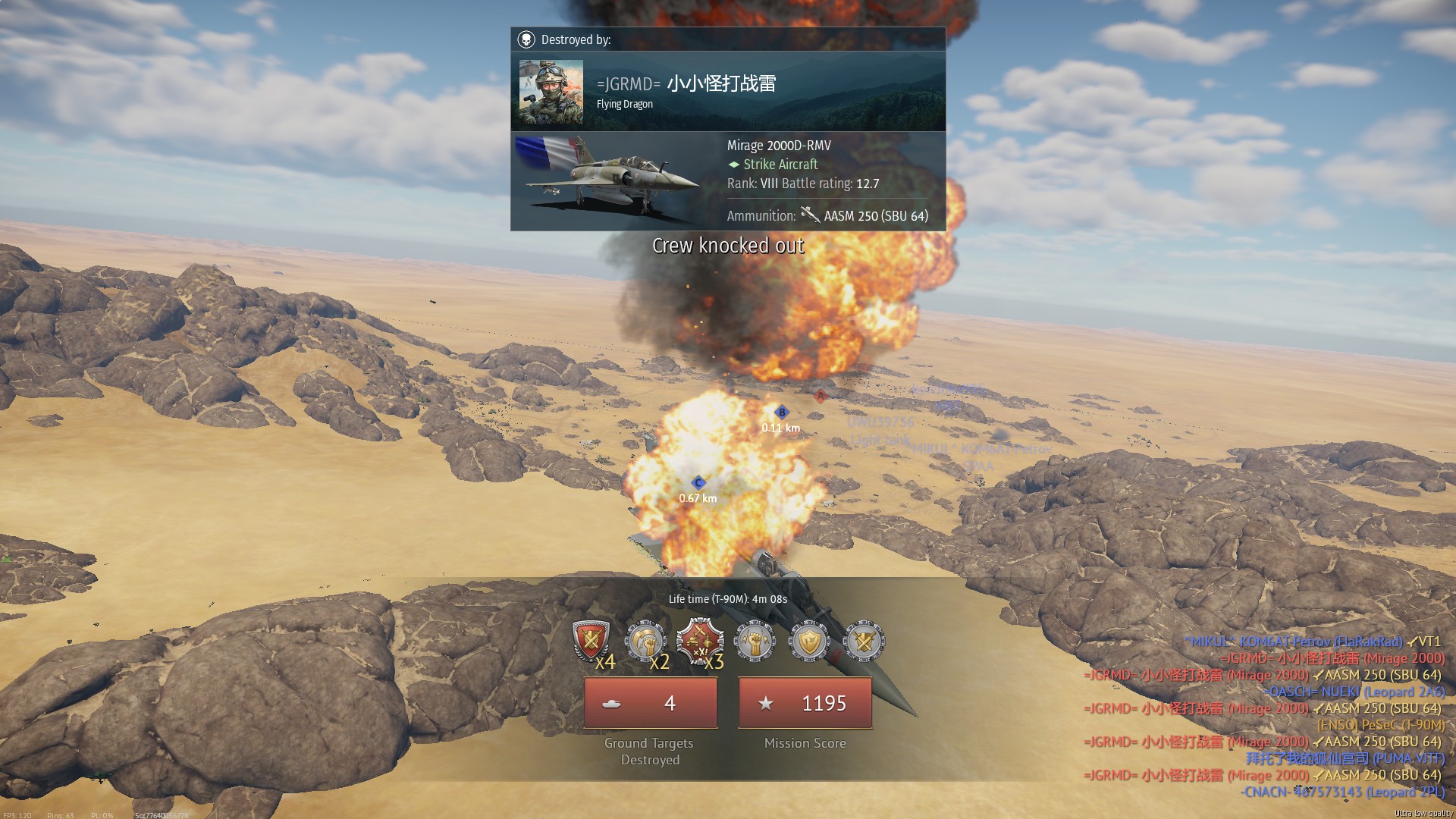 Забываешь что на J-11B вместо СУ-30СМ @ Летишь по центру карты @ Так же в 35КМ кидаешь 4 ракеты @ Понимаешь что это НЕ ТЕ РАКЕТЫ @ Все равно 2 фрага >>50579319 Да его явно выше 10.7 не воткнут.
