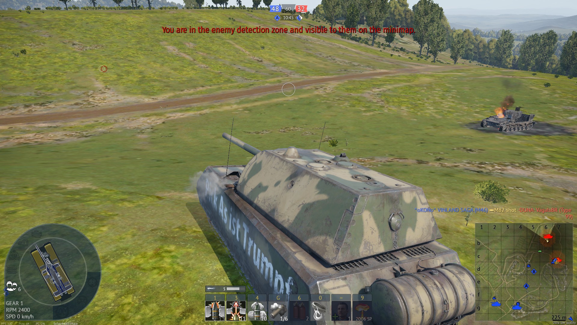 >>50541237 Такое на т90 тоже сейчас происходит, но мне показалось что это фича, кроме брони и рандомности у совка и нет нихуя. Алсо, вот еще кадр. Умереть на летке от совка со сток приводами это вообще уровень запредельный. Даже наводчик удивился. >>50541238 Ну знай я заранее чем кончится, то выстрелил бы конеш, а так идея сомнительная, низковат бр, и ломы проходят, но не пробивают обычно, даже если через картон по картону. У меня обычное дело прострелить какую-нибудь деривацию, и не пробить за ней бмд. Это уже прям совсем отчаянная мера, или если угрозы нет, а возможность пострелять по трупу есть.