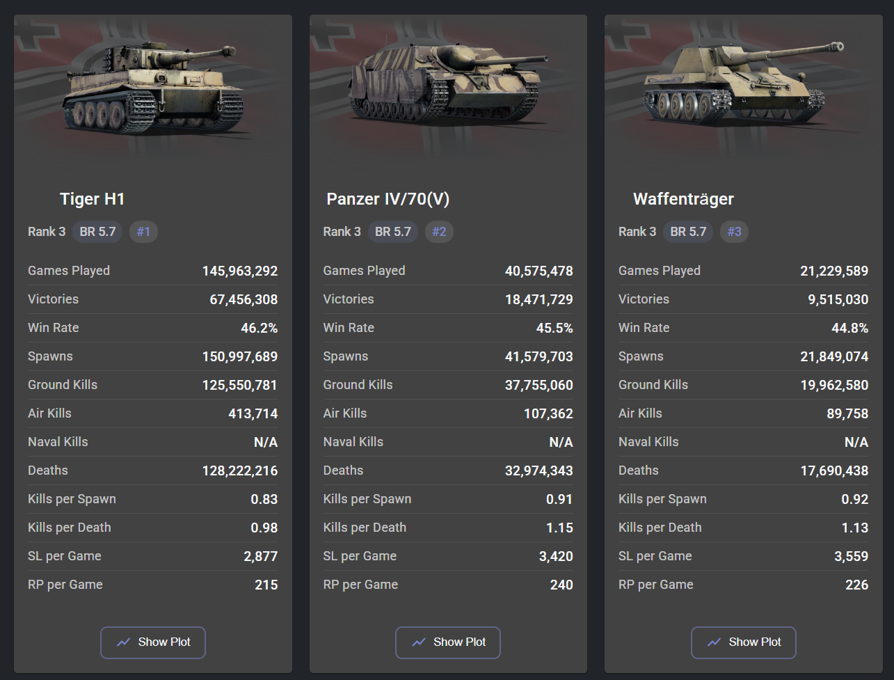 >>50544855 >тундродауны мало отличаются Ещё как отличаются. У меня на английском и еврейском спитухе Mk.IX при почти равных КБ и КД - винрейт 60% и 70% соответственно. А на любимой фоке - дай божечки 56%, при том, что КБ-КД на нём выше на треть и вполовину соответственно.