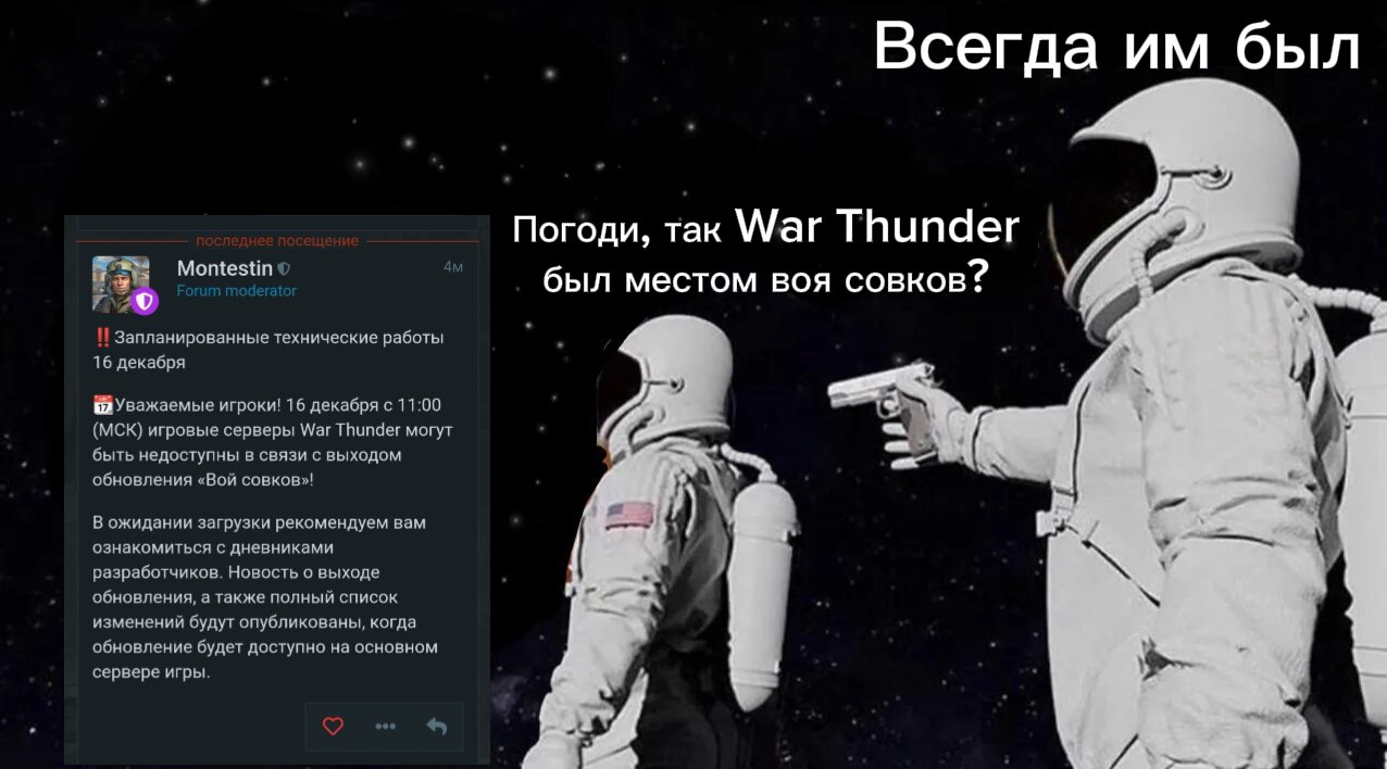 >>50576773 > фармануть дофамин с ебки танкистов с воздуха Ты когда ботов в пве ебешь тоже дофамин получаешь? Ну они же ответить не могут, просто безвольно прут вперед, а ты их ебешь МОЩНО. Ну или там в каэсике уже упомянутом с читами тоже кайфово играть? Ну там чмохи чет копошатся, целятся, звуки слушают, арунах))) Просто взлетаешь с нулевой в небо и ебешь аимботом бедолаг, жесткий кайф ваще, одобряю. Сопоставимый уровень интеракции. Сидя за камнем шанс получить ответку несоизмеримо выше чем получить ответку от танкиста когда ты его штурмишь. Отдельно отмечу лицемерие летуха. Настреливать по его мнению беспомощных дурачков из-за камня это скучно и уныло, а вот настреливать в разы более беспомощных танкистов с неба это неебаться геймплей. Впрочем оно не удивительно, первое летуху недоступно в силу его криворукости, а хочется. Потому он компенсирует через второе. Попутно упомянув про лоутир, ведь общеизвестно чем ниже бр, тем проще играть. Все сходится.