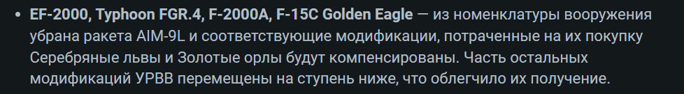 >мы планируем ввести для авиации IX ранг (да-да, тот самый) и переместить на него часть самолётов VIII ранга. Процесс будет сопровождаться традиционными для ввода новых рангов экономическими изменениями. Успейте прокачать короче.