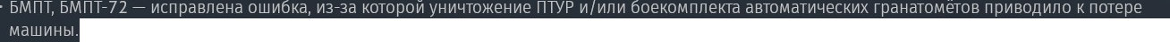 НАКАНЕЦТА!!!! >>50574928 У меня пикрил сборка. Я аркадодаун, а не РБ-биомусор, поэтому я постоянно имею дело с БМПТ противника. Только что, минуту назад бой, 50% смертей 1 из 2 была от подрыва ленты. Ласт пиком я взял турмса и окозаокнул убивший меня БМПТ. Ломом в ленту. Под башню. Подрыв бк от попадания в ленту постоянно.