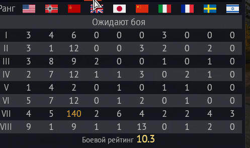 > в очереди 200+ человек > собираются письки синая 10х10 А потом Буланальников такой "Ойй)) Мы не можем сделать вилку БРов в бою 0.7)) Это увеличит время ожидания игры, а для нас главное что бы побыстрее собирались качественные бои))"