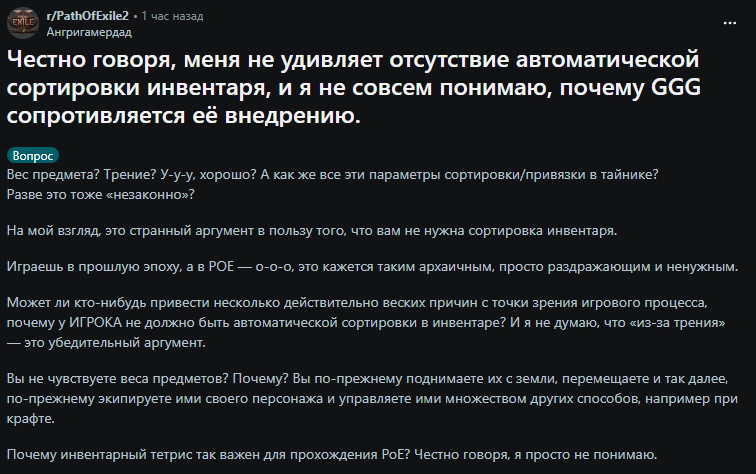 >Новой лиг механики будто просто в игре нет. Ее никто не фармит, смысла в ней никакого, даже на актах просто трата времени. Те кто серьезно играют в эту игру играют не ради игры. Важен сам рестарт экономики, а не то что там что-то новое выпустят, это фон, хотелось бы чтобы он был хорошим, но и так сойдет.