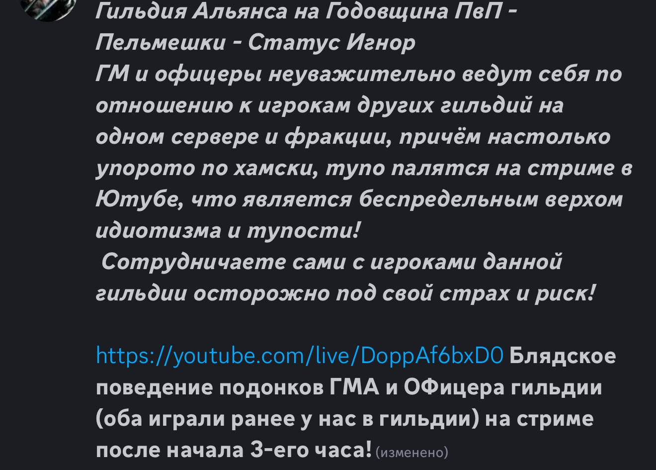 https://youtu.be/Pm3AHxKnFOQ?si=giFoqnb7fCQDGOIK Терпилы с мибов, что там за драму ваш шизоид-гм опять нагенерировал? Сервер и так хуета мертвая, так еще и палаты с острыми пациентами вместо гильдий. Почему так?