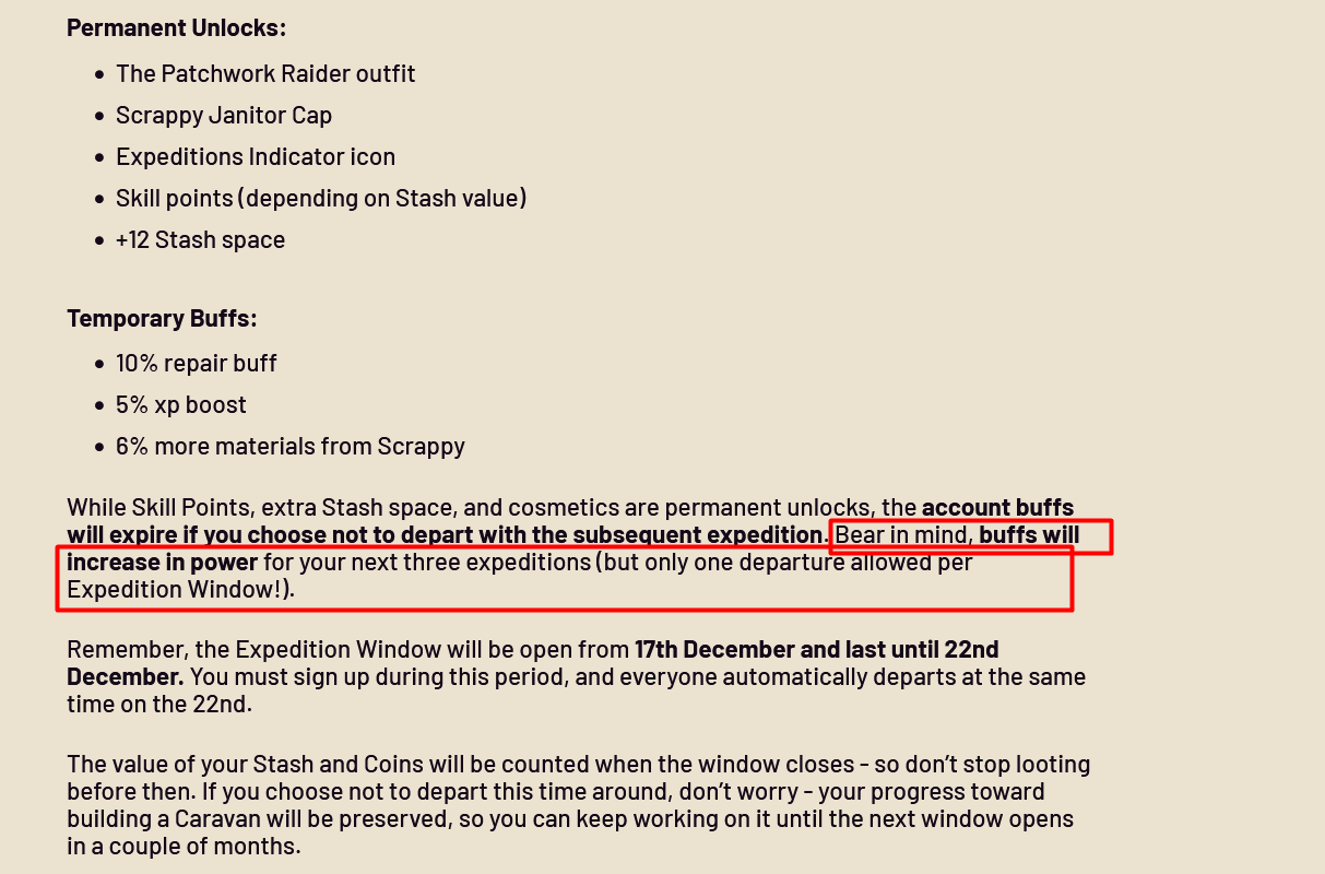 Вся эта затея с экспедицией сделала бессмысленной игру в преддверии Рождества, и теперь вы запускаете зимнее мероприятие "до", что позволяет нам завершить экспедицию, так что мы можем наблюдать, как другие наслаждаются, зная, что если мы примем участие, все, что мы получим, будет потрачено впустую...