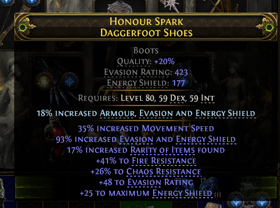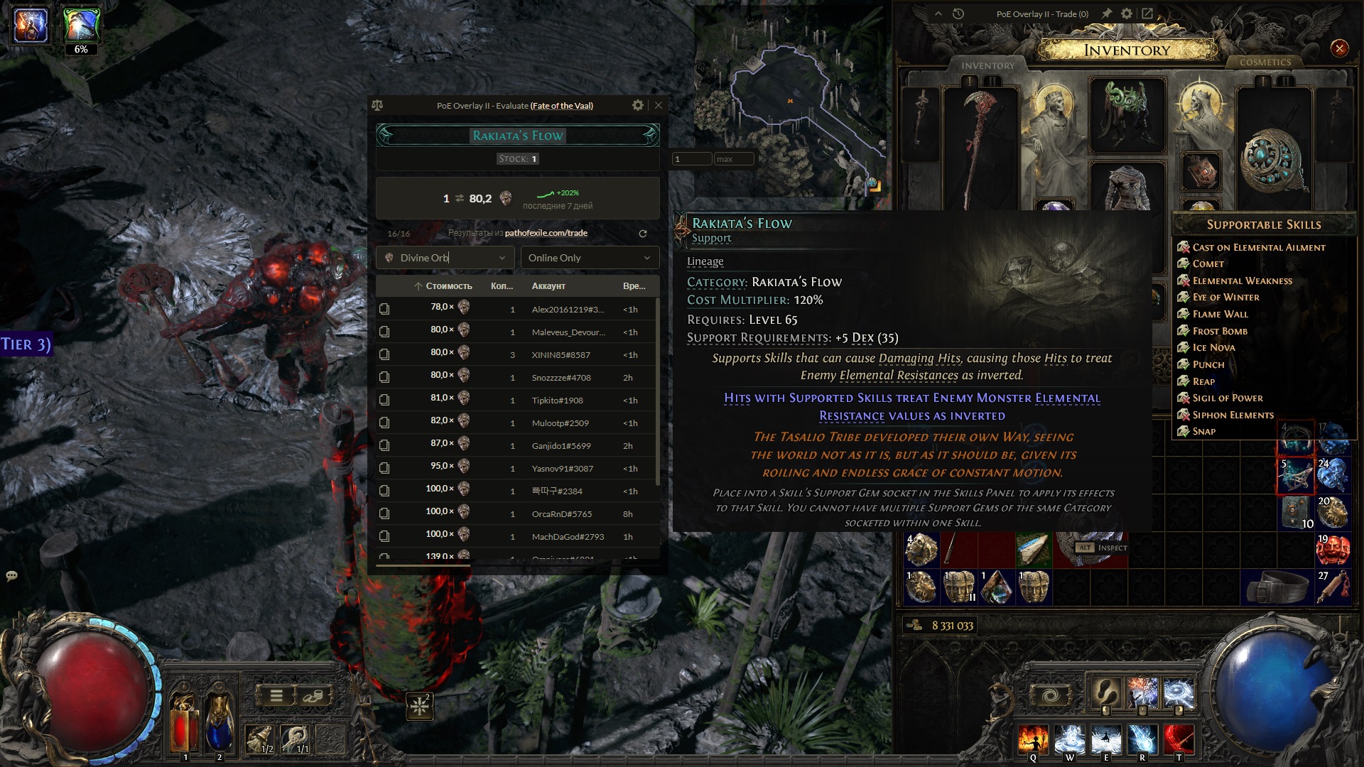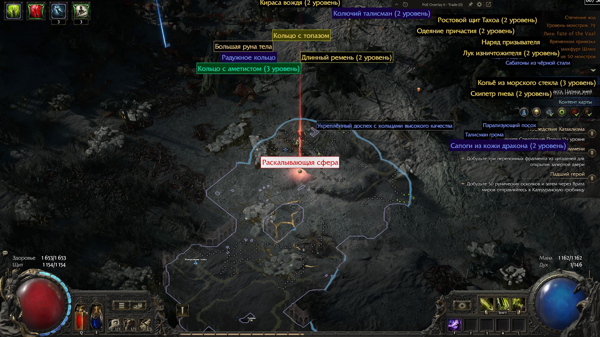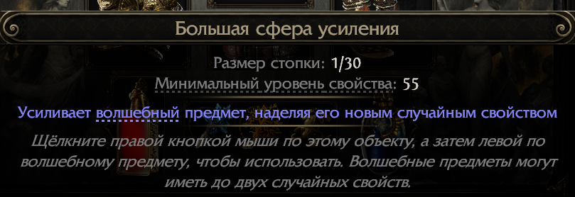Предыстория: выбил белую палку, сфера превращения дала первым же свойстом +4 к камням, а сфера усиления дала гибридный дух и ману, урон приспешников был накинут эссенцией