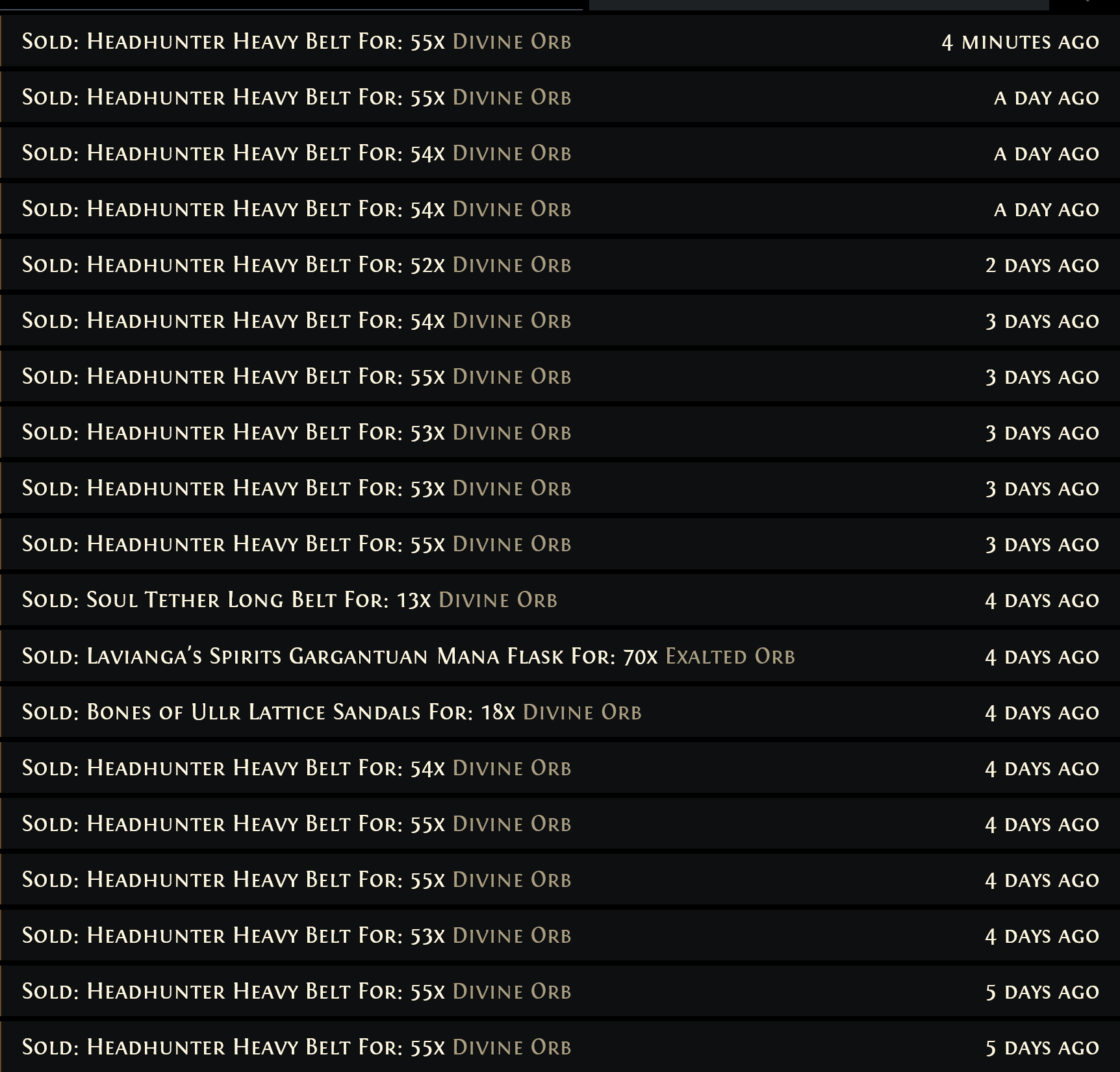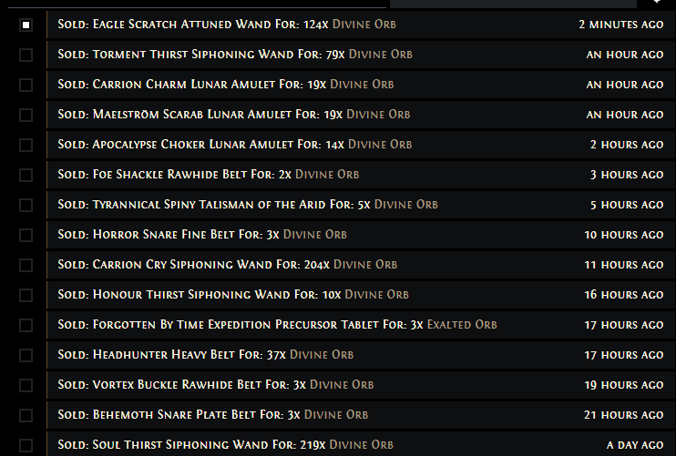 Я вообще с пола вещи не подбираю потому что не шарю что ценится а что нет, пытался но один мусор будто выпадает и поэтому забил, фармлю только экзы хаосы и нан их одеваюсь, если диван выпадет то вообще победа. Так и играю, а в луте до сили не шарю поэтом у меня в трейде 0 занятых слотов.