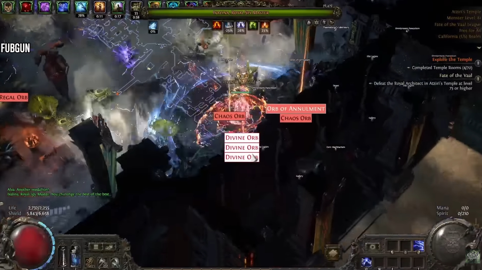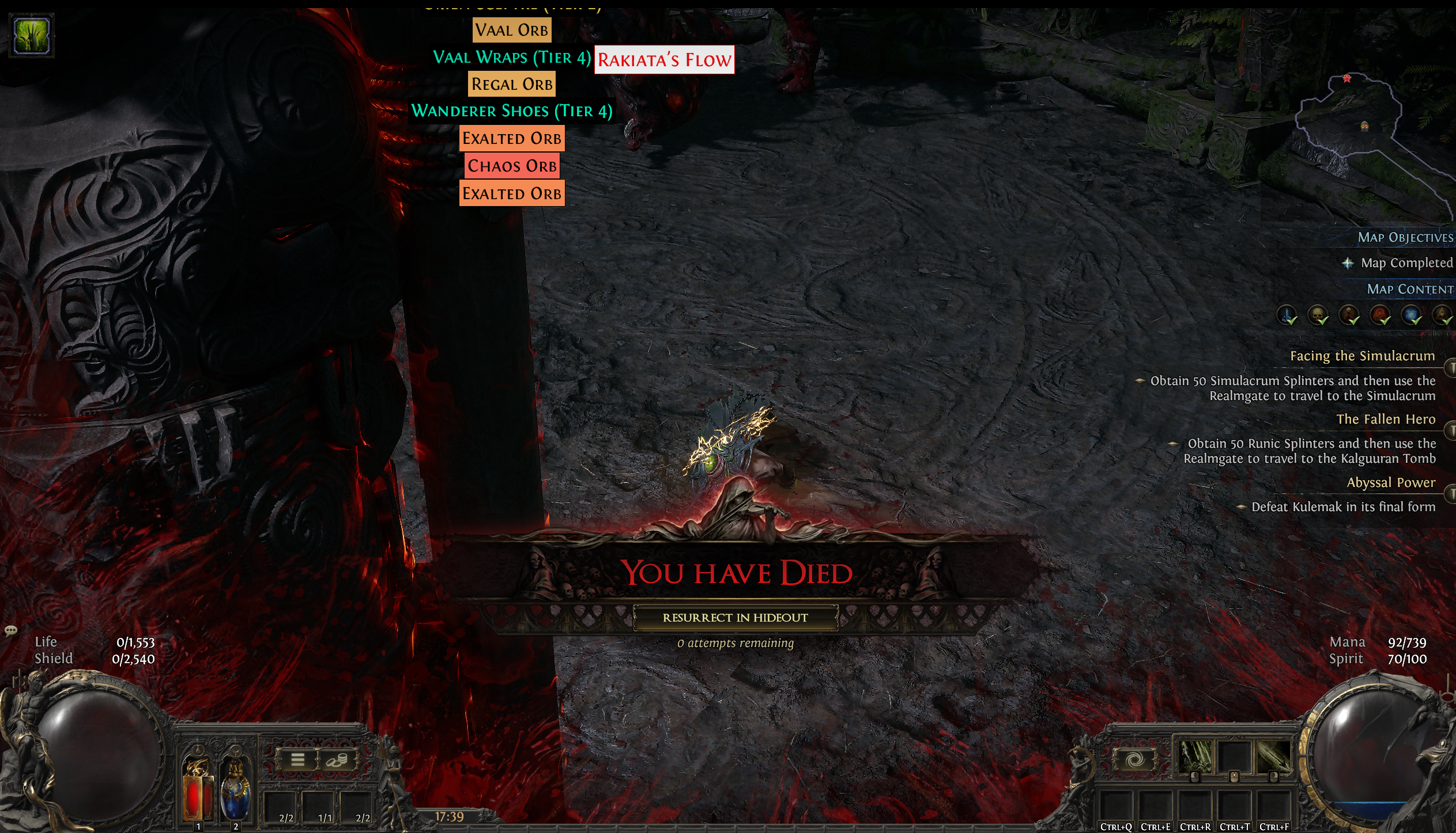 Закрыл весь контент кроме Т3 делириума, но на него настолько похуй, что даже покупать сервис не буду. За всё это время так и не въехал как спавнить на атласе цитадели боссов для Арбитра, ну да и хуй с ним, благо его фрагменты не сказать что сильно дорогие. Короче, до следующей лиги.