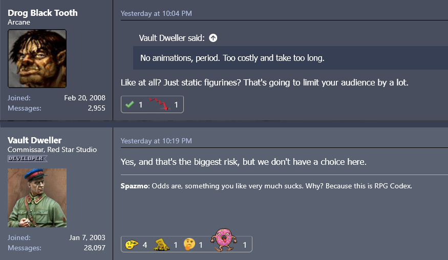 Чел, они собирали кикстартер буквально на "мы сделаем ваш настоящий балдурс гейт". Если бы в игре не было бы кобольдов, хоббитов и вампиров, безумная утя забытых королевств прибежала бы и расплакалась