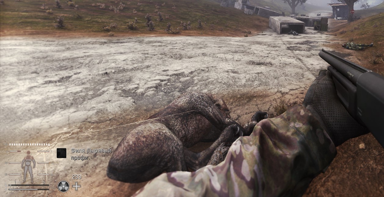 Бленд так я и не понял как умер. Будто обычный нпс упал с 1 пульки, мда. Ара немного продержался, но очередь в лицо с пулемёта не выдержал. С него кстати броник хоть выпал, заебок