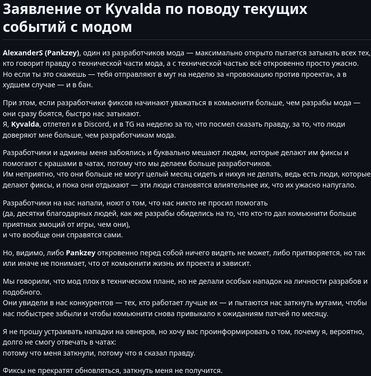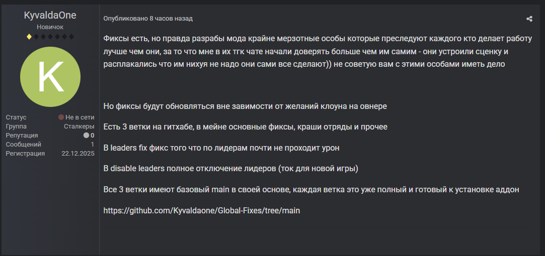 И всё. Скуфы со своими шизойдными ОПянками и модами на ЧиеН на движке ЗоПе с контентом из аддонов на моддб под общим названием Копромали ничего не потеряли, но и ничего не приобрели. Каждый остался при своём.