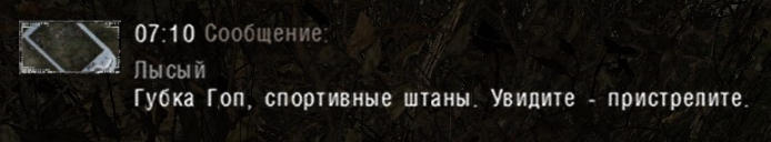 Сбежала Хип со Складов, и наткнулась прямо на контролера. Выстрелила из своего ПМ - не попала, еще выстрел - опять промах. Расстреляла весь магазин - а контролер продолжает идти прямо на нее. Что делать? Достаёт Хип дрожащими руками нож и ошалело смотрит на мутанта. И тут контролер говорит: - Девочка, тебе щас не нож, а вазелин больше нужен.