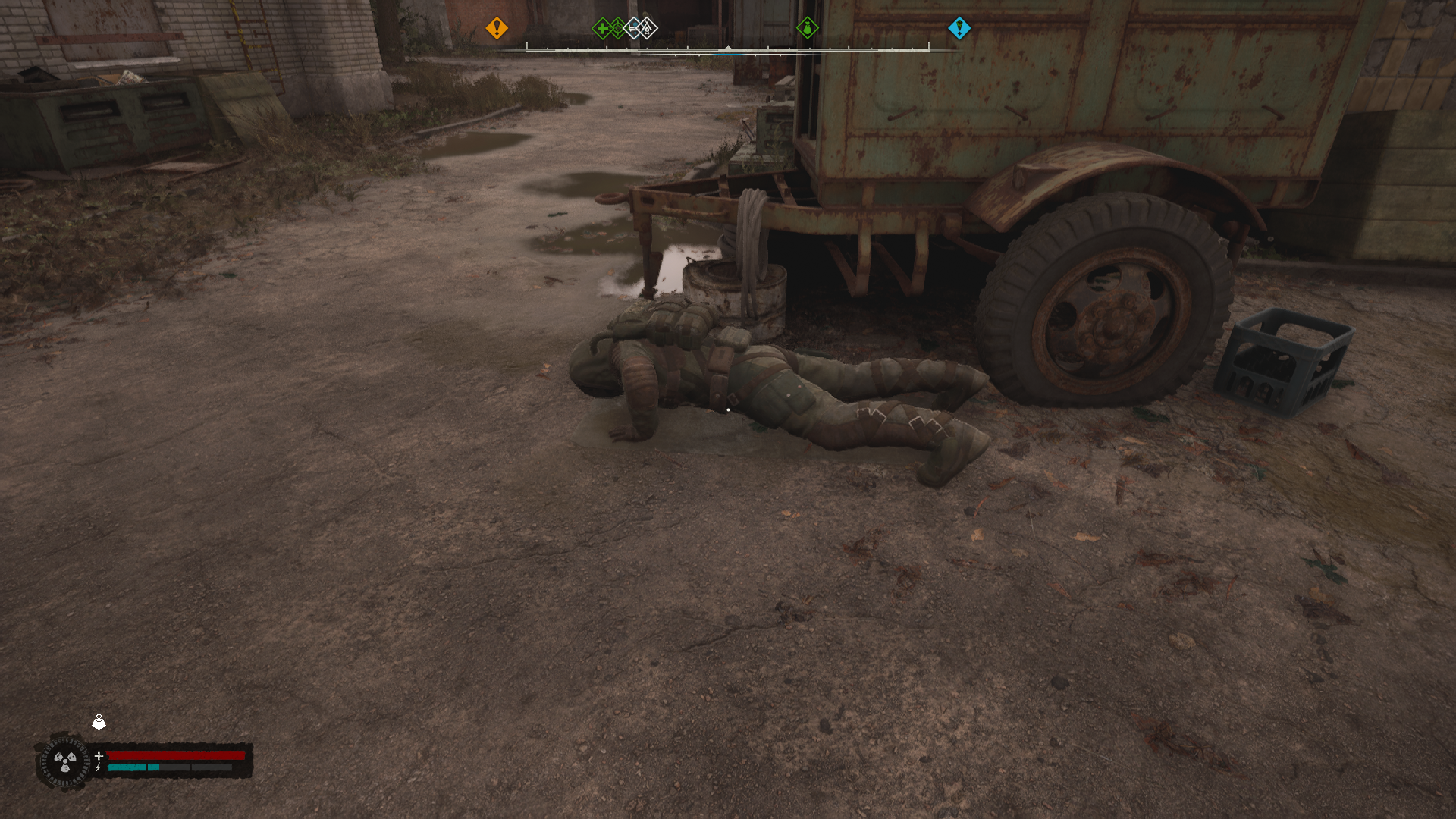 Минус 2 жизни в первый день. Сначала псевдогигант полез за Славиком на вышку в центре кладбища техники. Заметив, что готовится удар в землю, сталкер подпрыгнул и уебался насмерть с вышки. Урон от топота тоже прошёл. Потом ещё в тёмной долине проиграл перестрелку сержанту Кузьмичу. Уснул на свалке, перед этим пообещав, что завтра обязательно доведёт напарника до Янтаря. Славик Губка не был хорошим проводником, хотя и напиздел, что знает дорогу.