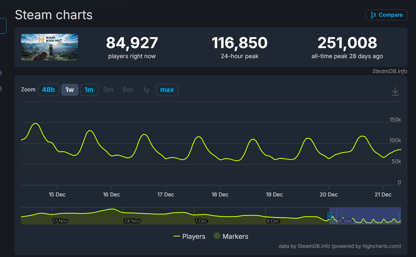 >>50585821 Какого лярда мань? Ачивки из стима и речь про стим, вот у тебя якобы щас играет 85к из общего пика в 250 и суточного в 116, при такой стимостате это просто смешно нахуй.