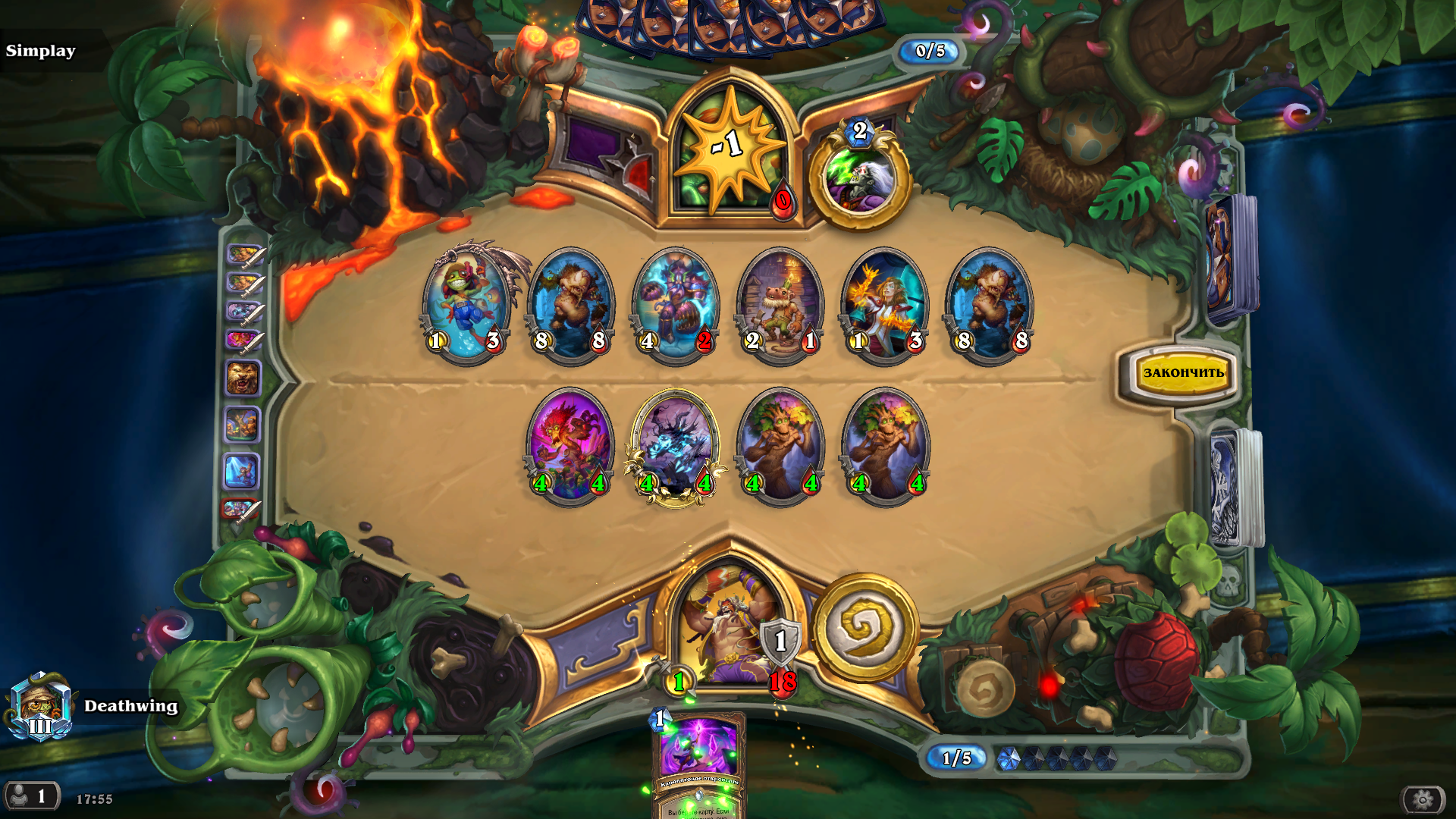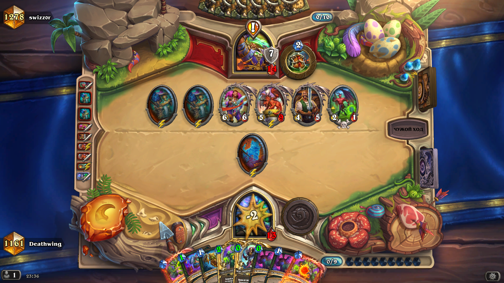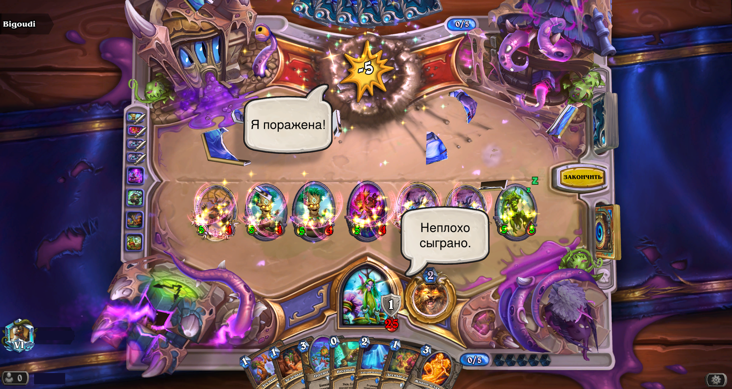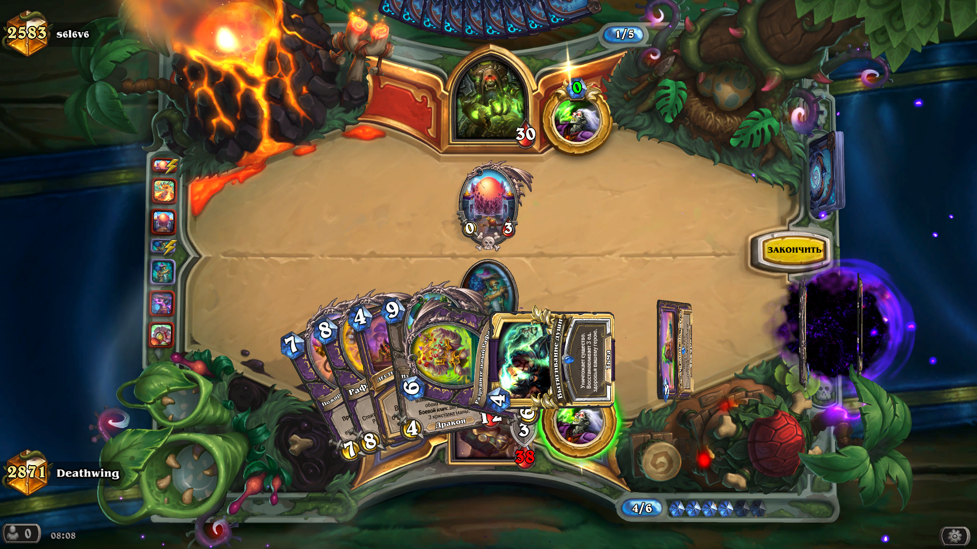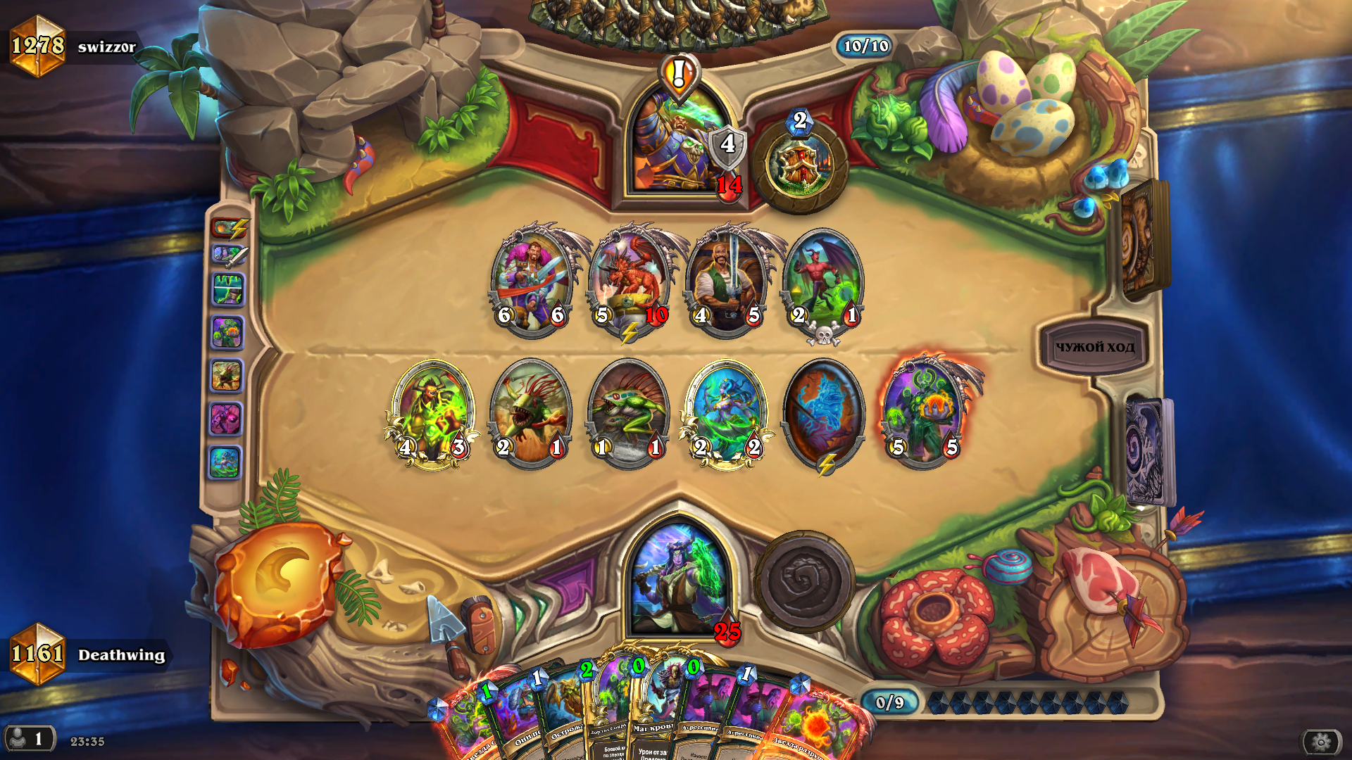 сегодня день благословленный подкруткой в мою пользу, тупо не проигрываю, даже когда играю на несуществующей колоде элементаль-шамана собственной сборки, все равно как-то вовремя приходят нужные карты для летала, оппоненту не хватает ответов, чтоб отбиться и отхилиться, просто чудеса