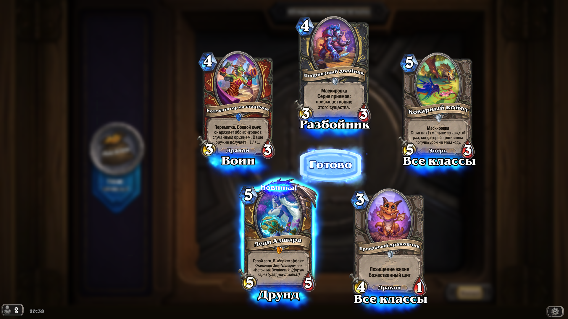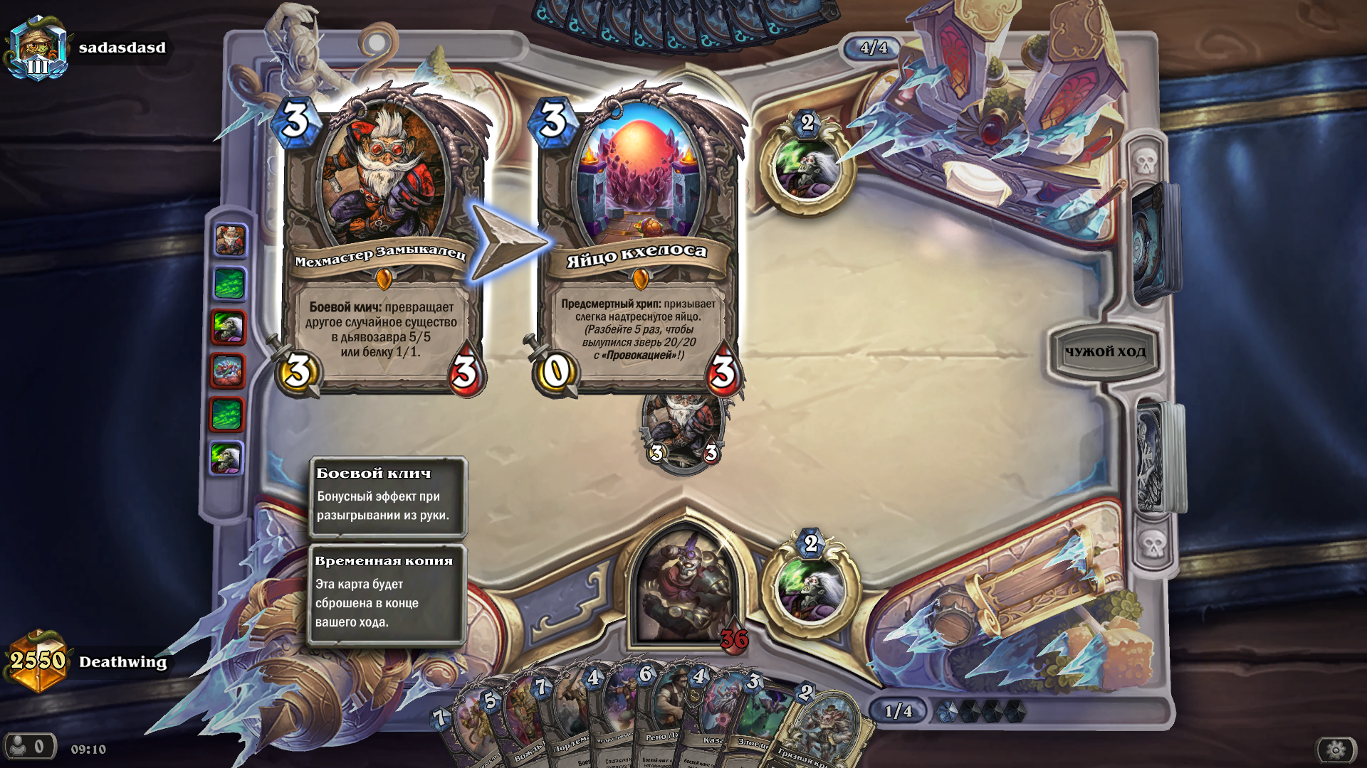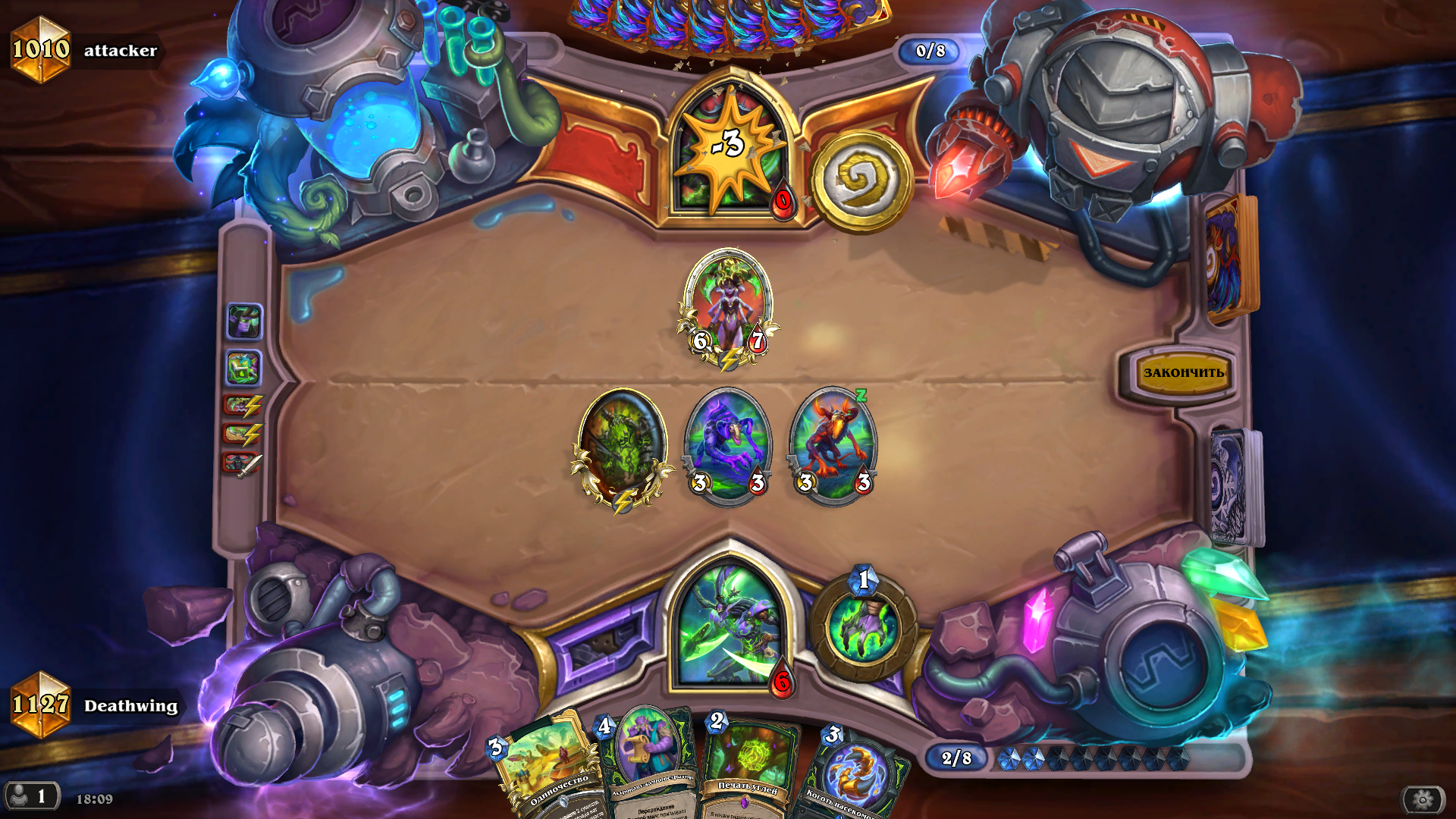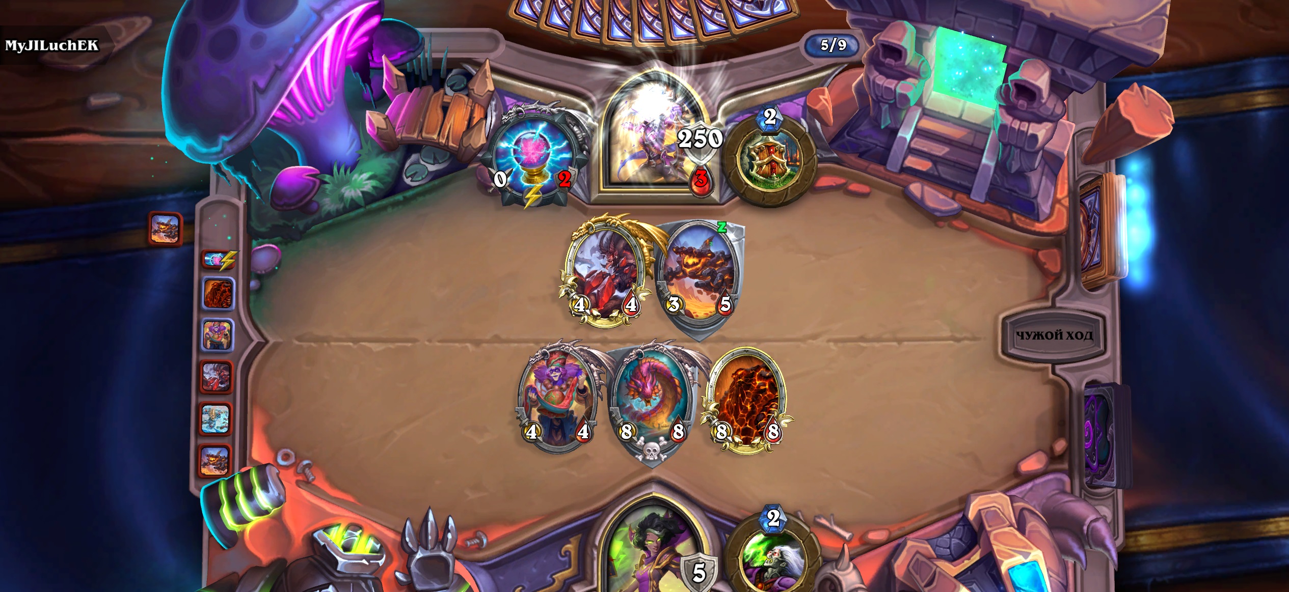 кое-как впервые собрал этого калича с 15 хп для ачивки, был в полной уверенности, что сейчас меня как раз и залеталят за один ход до выполнения, чел уже насрал на стол, превратит всех в рагнаросов или 8\8 демонов и пизда но пронесло, нихуя он не сделал, ачивку я выполнил, и что ещё смешнее, потом даже победил