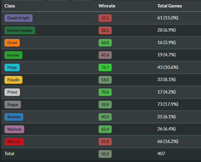 >>50668238 хз может за этот день мета изменилась ну в целом у меня проблем не было не считая того что половина ладдера это квест чмарлоки на лайфстиле там надо чуть чуть постараться - лепрогномов на свой ход убить чтобы они не хилились тебе надо просто агрессивно играть а не ждать пока баба 2/1 со сбросом придет в целом там в ебало на 2 ход шесть урона закинуть по приколу а не ждать терпеть