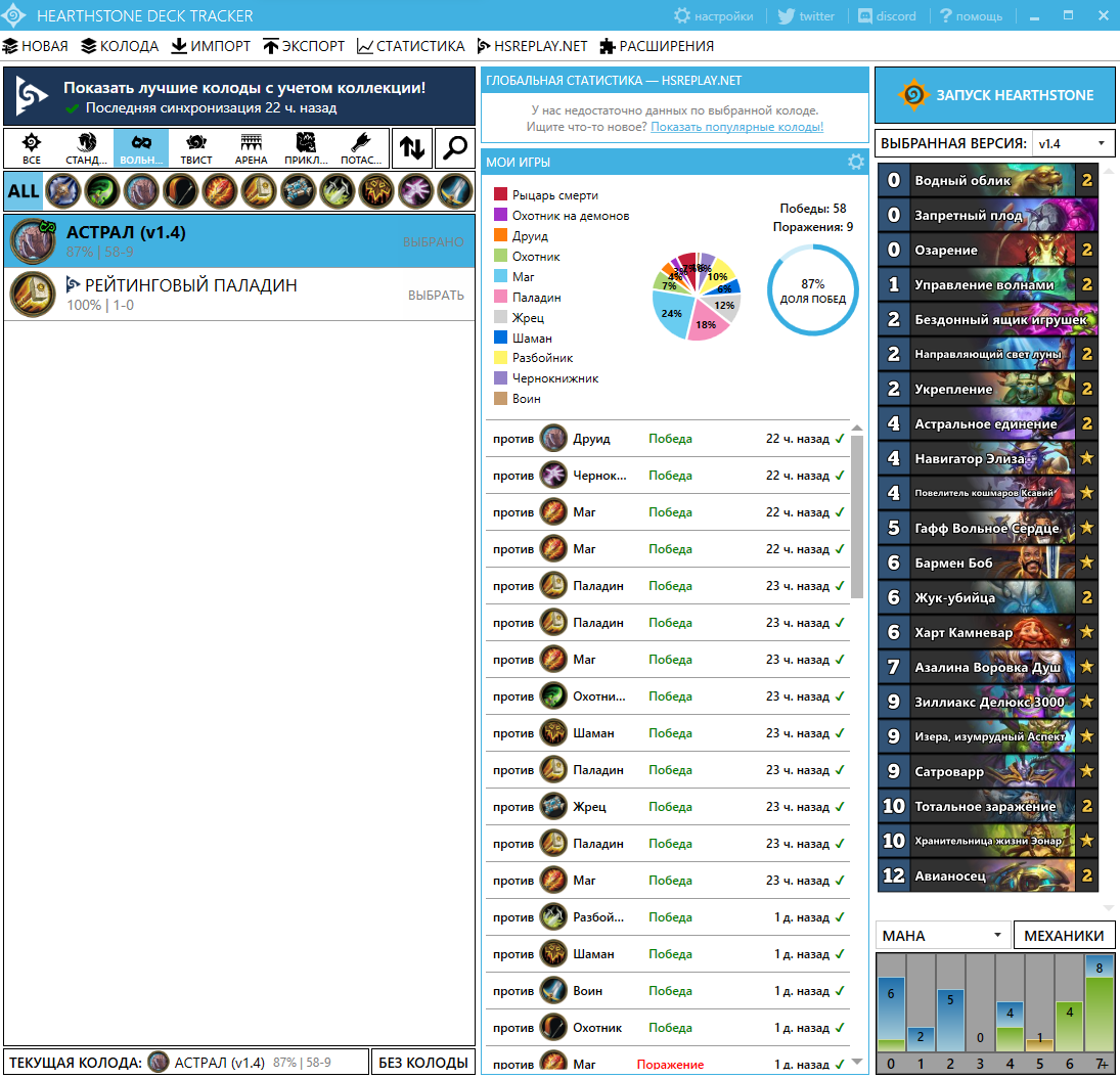 это я балуюсь с декбилдингом, но на ней играть достаочно приятно, колода часто хорошо себя чувствует в начале партии, справа последняя версия, а слева с более-менее статистикой