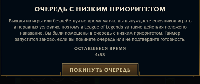 Каждый раз удивляюсь, зачем ты такие помойные игры не доджишь. Подождал 20 минут, поиграл в кс - зато нервы спокойны, глядишь повезёт с командой после 20 минут.