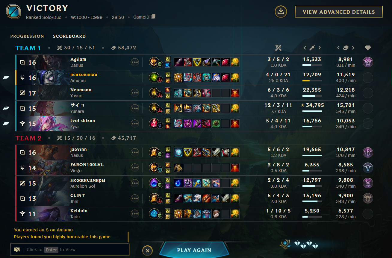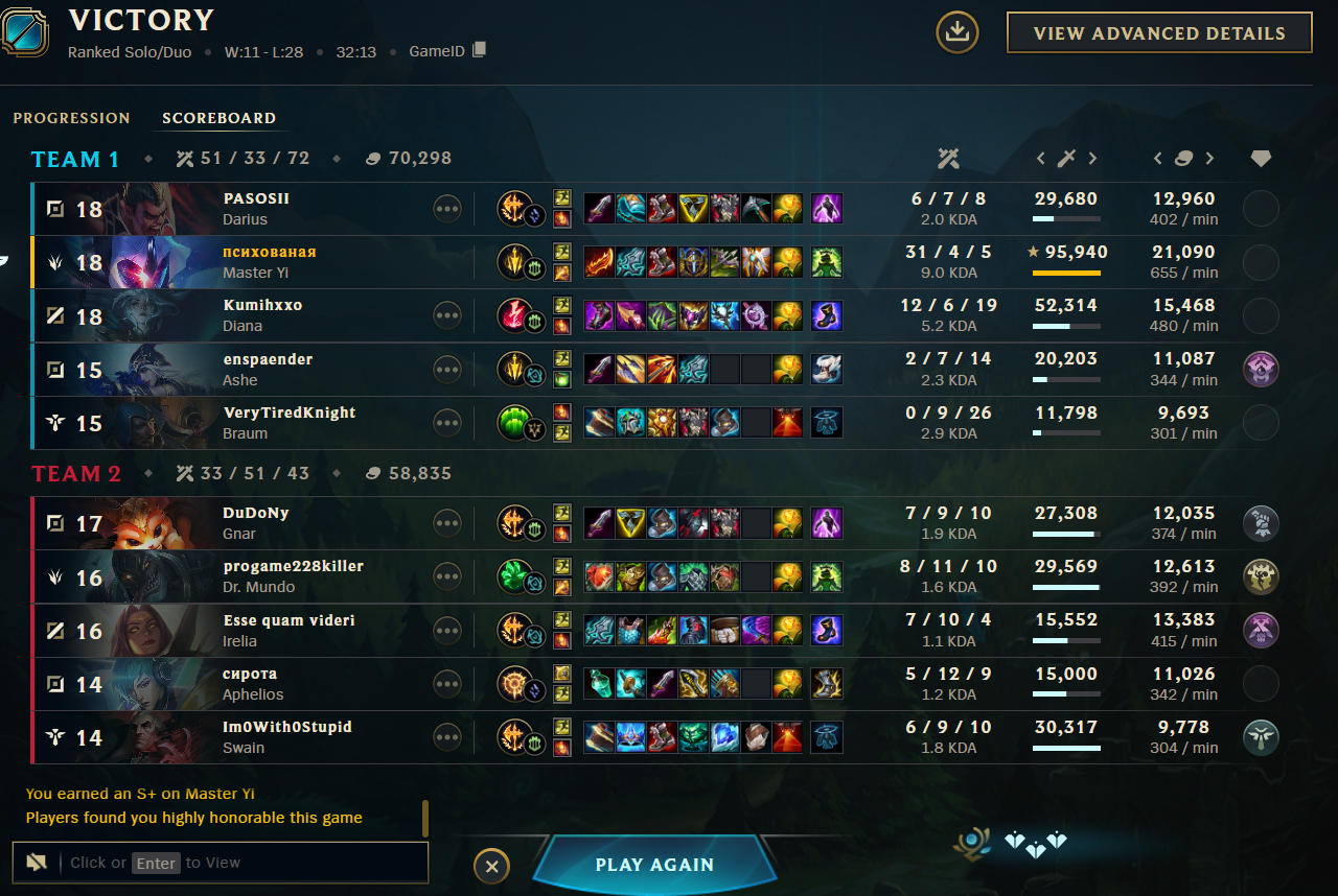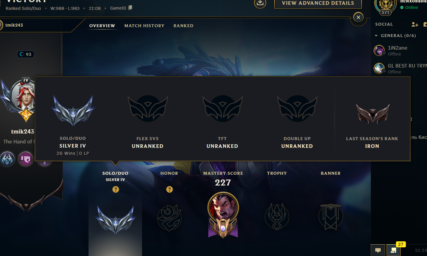 >>50681347 Сейчас зашёл случайно, да. Я играл обычку вот где-то 1к+ игр вообще не учась ничему и хуй пойми чем занимаясь. Потом что-то в голове щёлкнуло и я в ранкед пошёл, учиться по настоящему играть.