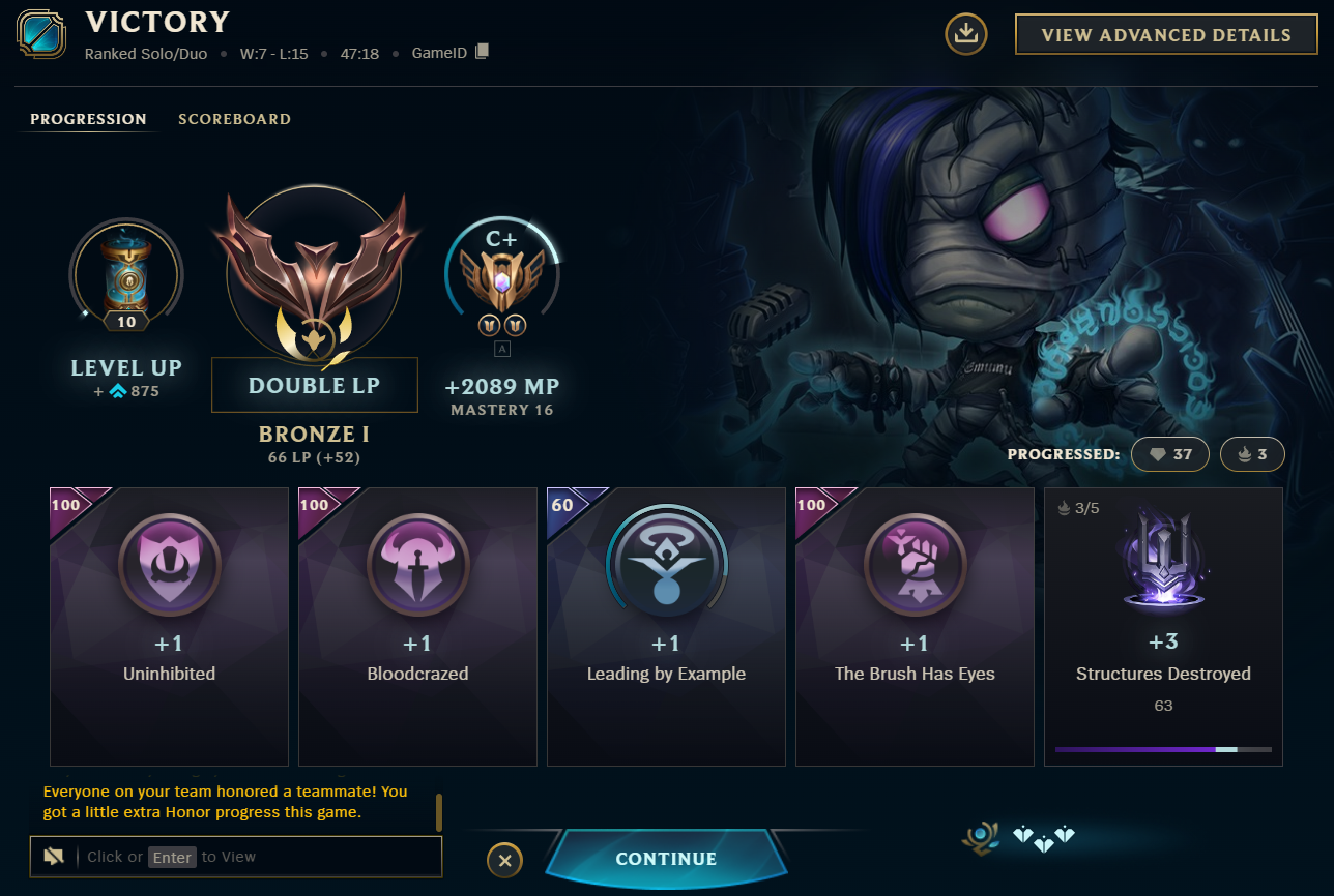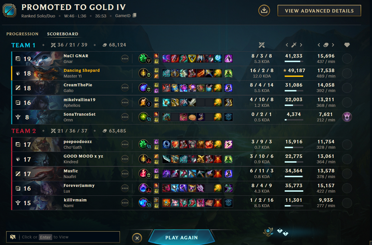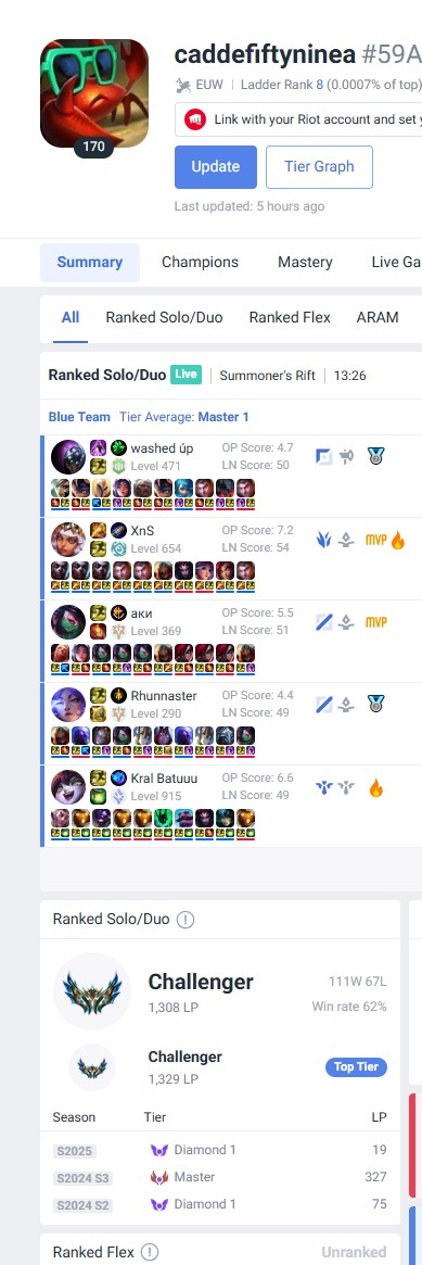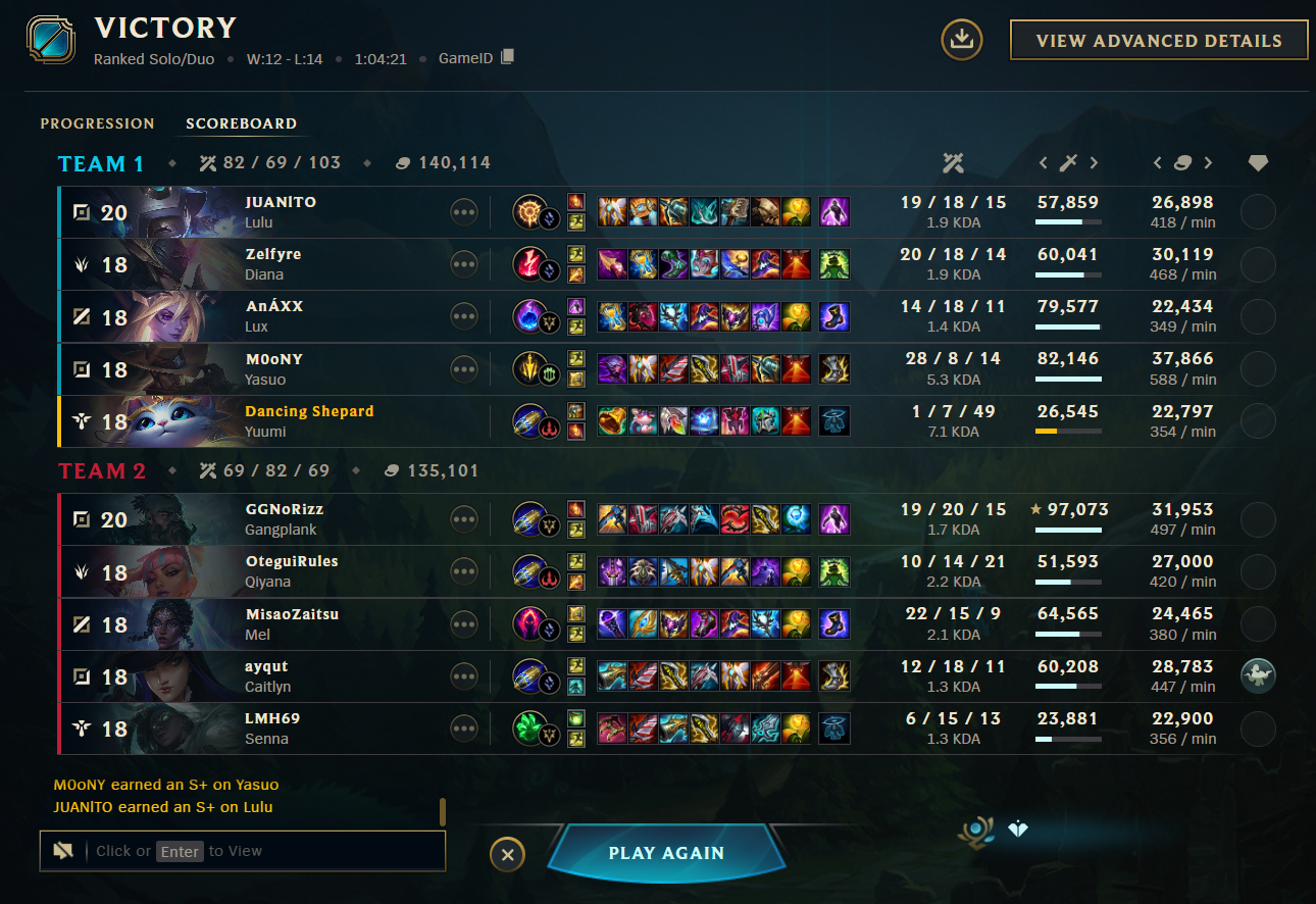 >>50681347 Сейчас зашёл случайно, да. Я играл обычку вот где-то 1к+ игр вообще не учась ничему и хуй пойми чем занимаясь. Потом что-то в голове щёлкнуло и я в ранкед пошёл, учиться по настоящему играть.
