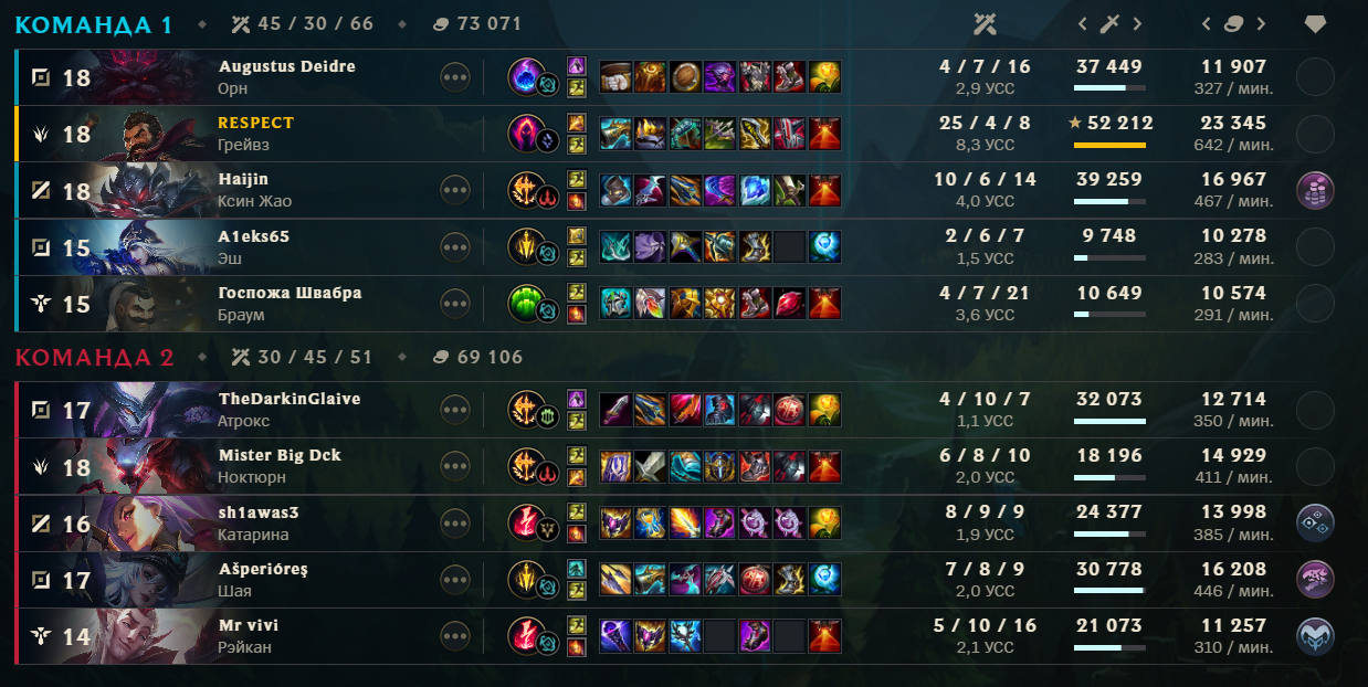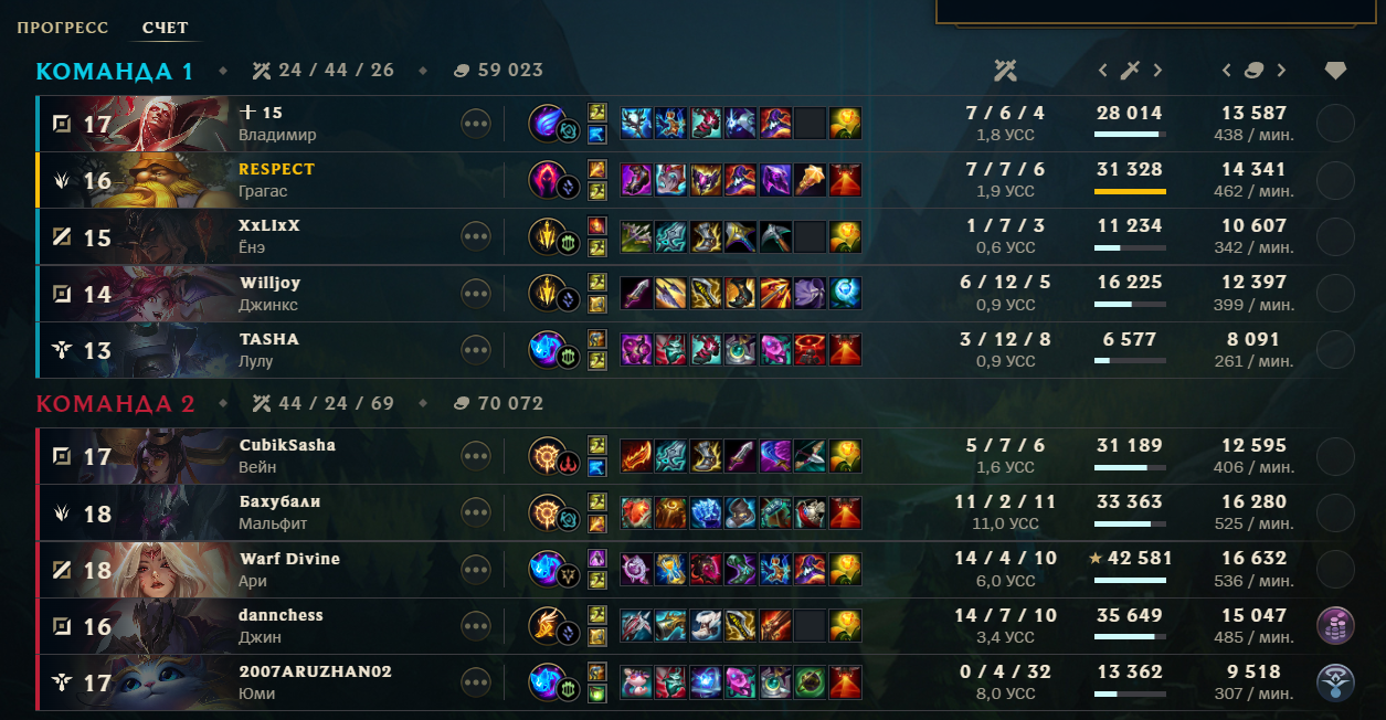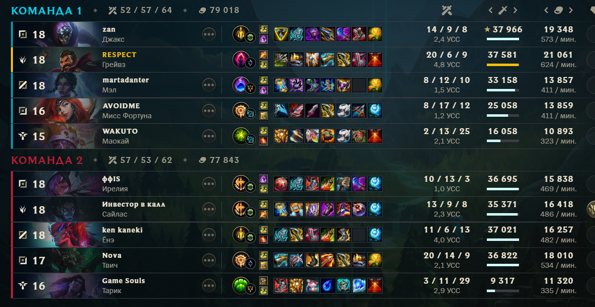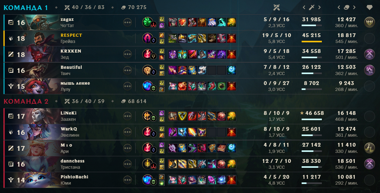 ладно тут фришная была хоть и морально тяжело было с такой катюхой заставлять себя играть, когда чел на катарине просто под вышкой сидит и не может даже в свой лес мувнуться, когда я вижу как энеми катарины всегда роумят карту набирая 20 фрагов, а тут чел просто оставляет меня в собственном лесу терпеть инвейды шако и сайласа, хорошо хоть грейвз збс в шако и он на этих инвейдах меня же и расфидил, подгоняя стрики при этом, ведь он где то киллы находил еще.