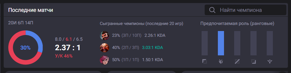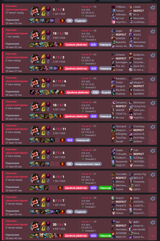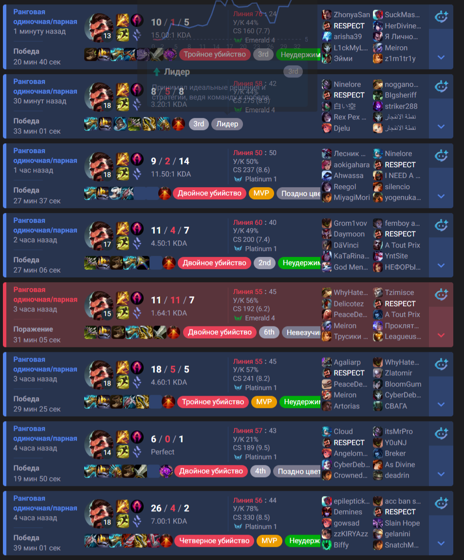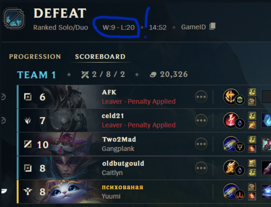 Сам факт ее наличия уже показывает какой ублюдский, токсичный и полный риотовских тимапидоров ММ в лижке - я часто чекал профиля с кем играю и там буквально 70% это уродцы у которых меньше 40% винрейта)))