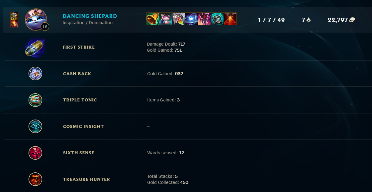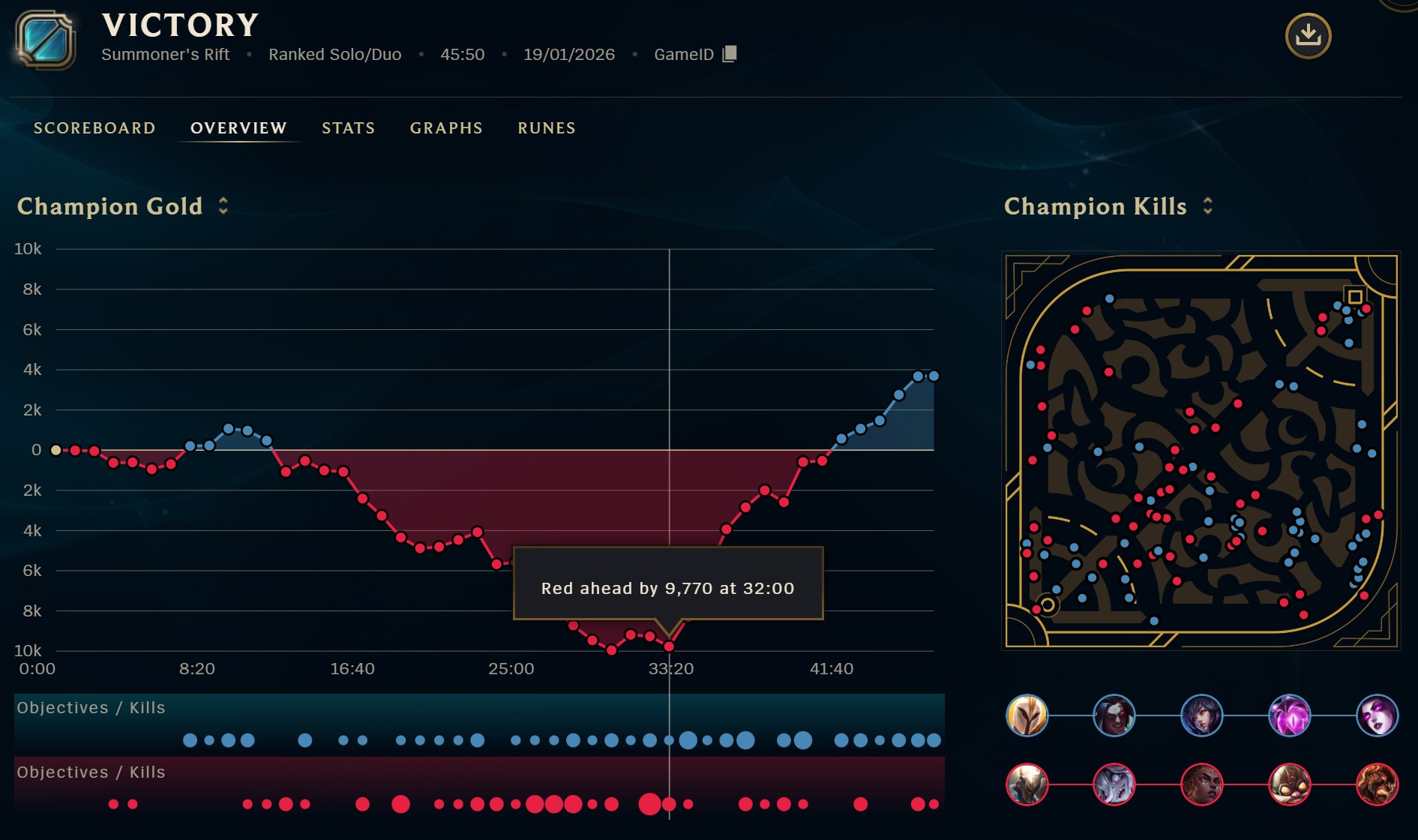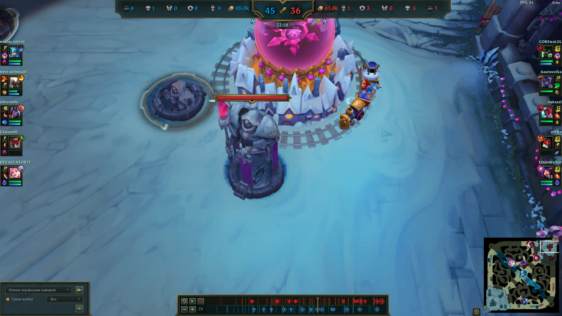 Как свой главный минус я бы сказал фарм, у меня где-то к 15-20 минуте когда кончается лайн фаза что-то в голове щёлкает и я с отключенным мозгом бегаю по карте, когда я научусь нормально фармить и совмещать это с роумом и объектами, тогда думаю и выберусь из этого ада.