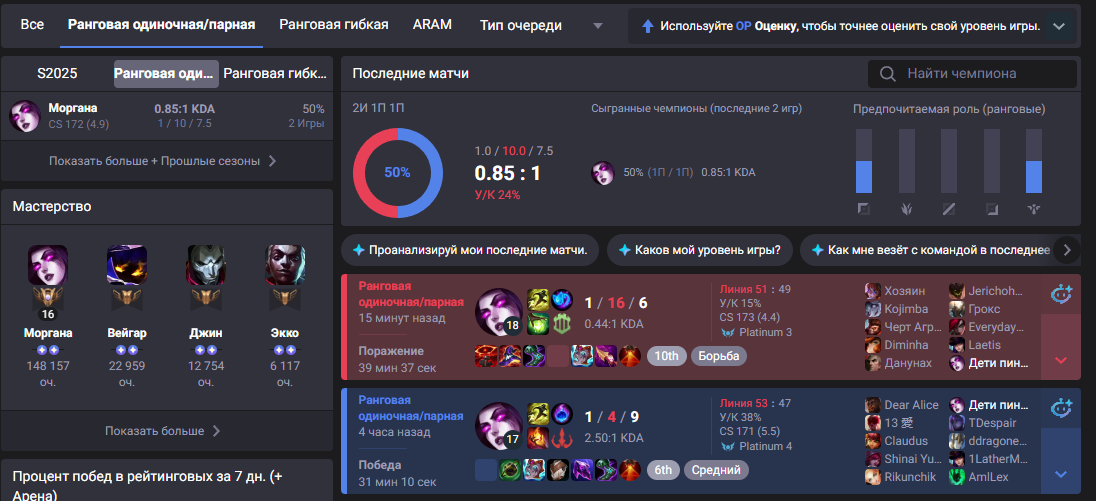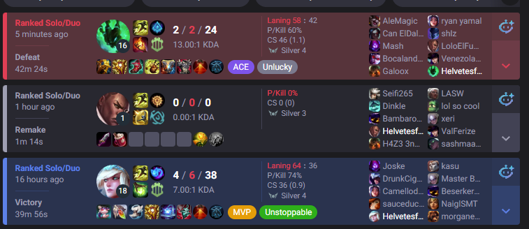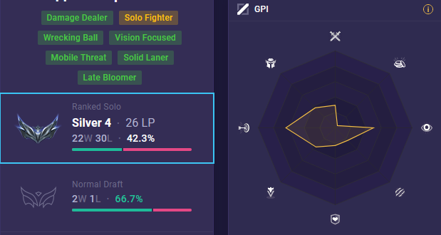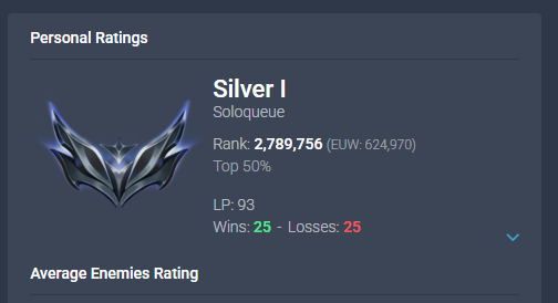 Пиздец я это сделал. 52 игры с серебра 4, ровно 50% винрейта, т.е такому нормису как я с кда 3.3 выигрывать с этими выродками можно только благодоря системе +25 -15.