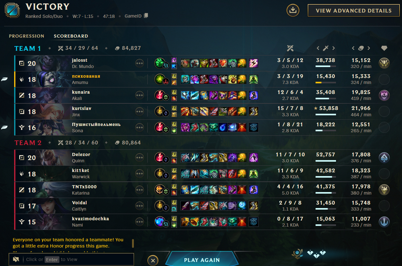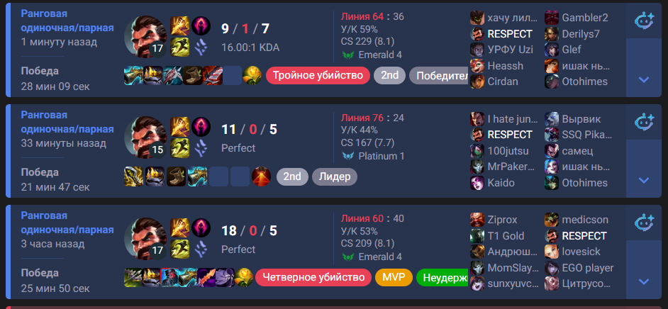 я играю на победу, со всех сил. мне переодически попадаются тролли пидарасы которые отыгрывают 0/7/0 к концу лейнинга из-за этого становится намного тяжелее выиграть потому что игры происходят на даймонде+