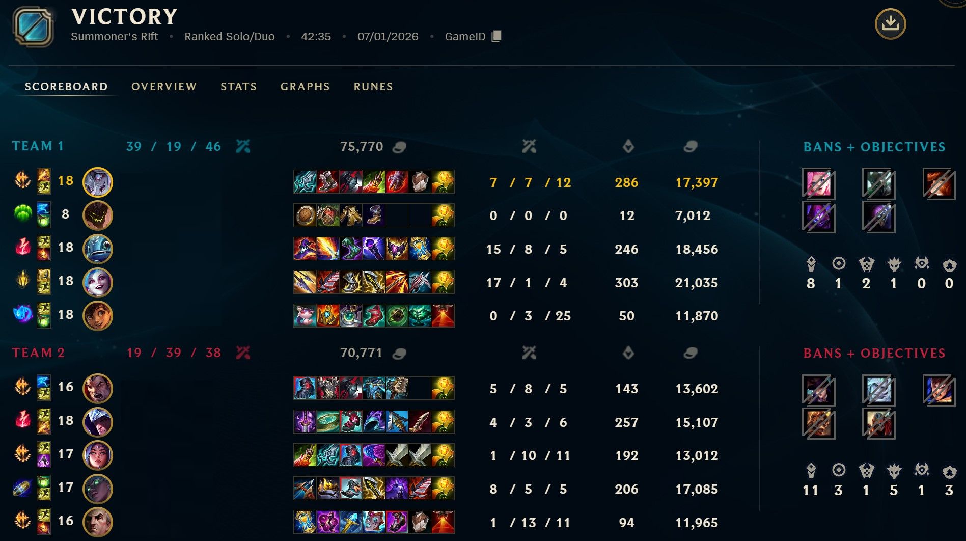 И потому ты выиграл. Ты так мог бы выигрывать почти все игры, но ты предпочитаешь афкшить поднимая кверху лапки с гласскэннон билдом который не прощает ошибок, и дамагом по чемпам самым низким в команде.