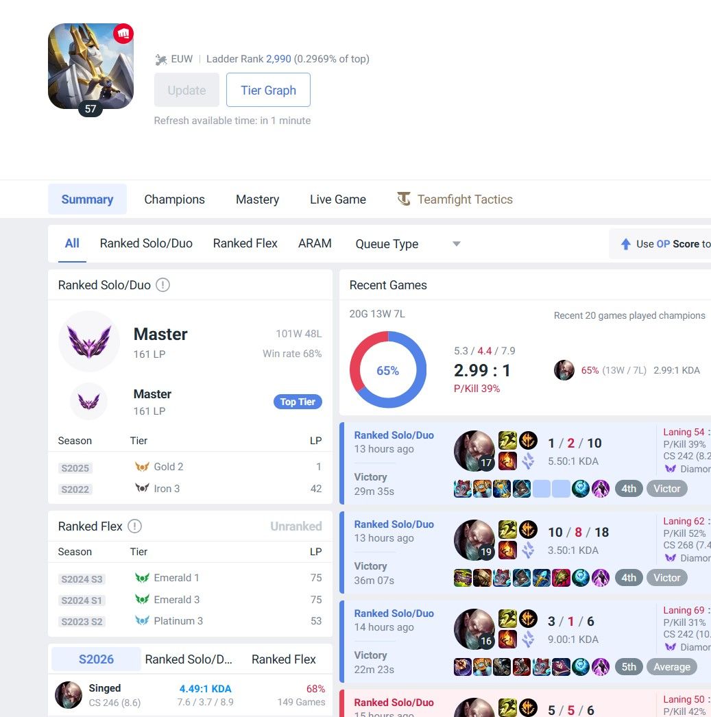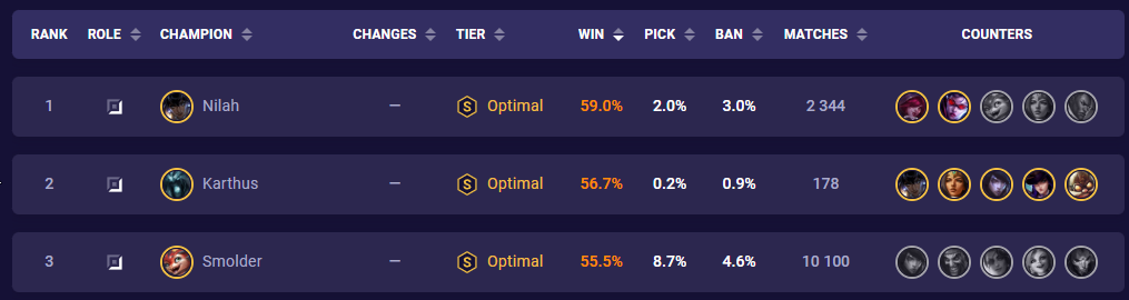 U.gg пишет что у Тимо топ винрейт 51%, что по-моему мем, ибо его ебут все популярные топеры - Сион, Олаф, Малфит, Варус, Касапия, Акали, Орн. Даже Ясуо топ ебёт его, даже бесполезный Шен. Это всё там же в статистике. Откуда 51% - хуй знает.