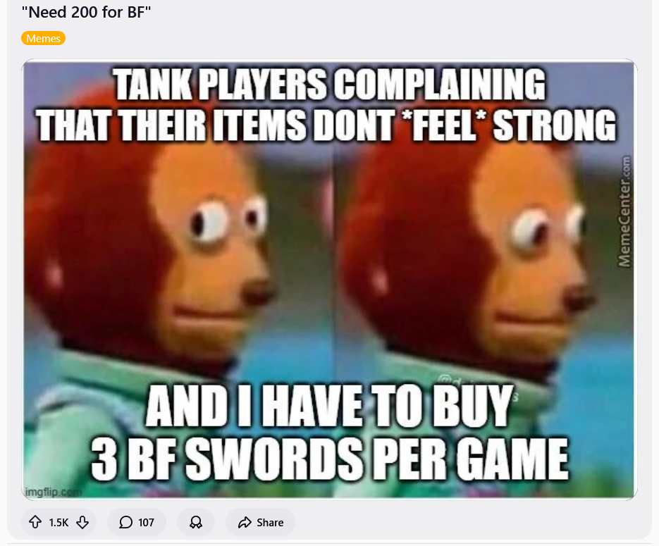 >>50690342 А, ещё в этом промежутке с начала моего пути в этой игре до этого момента был год пустоты чистки берец и покраски травы, а так же один раз у меня просто жопа сгорела и я забросил. Так что да, можно сказать я год играю. Из которых 99% это арамы и обычки, и я даже не преувеличиваю. А сейчас я захожу в обычки и происходит пикрил, неужели я был таким-же...